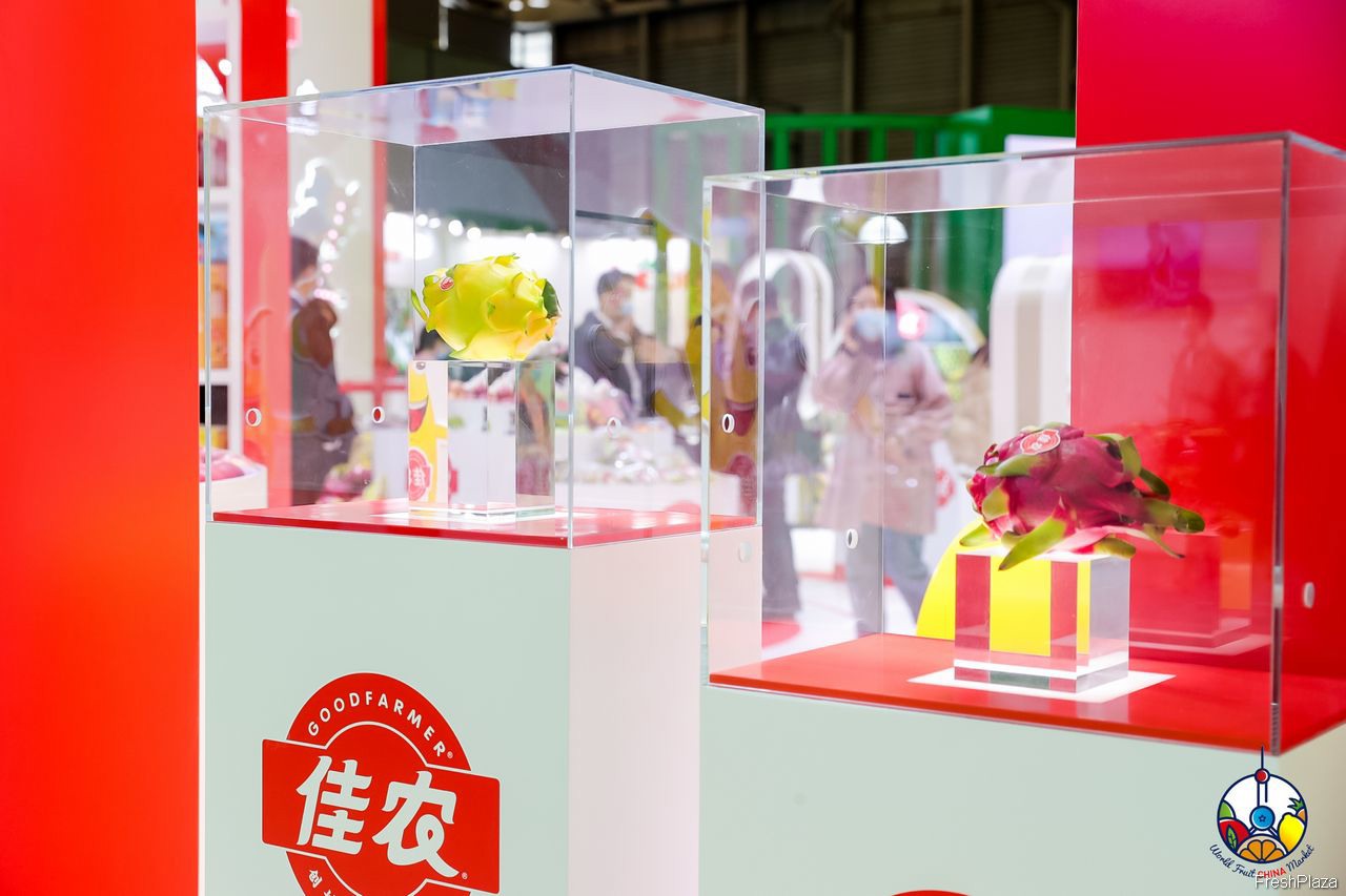 佳农展台上的火龙果展示区。
