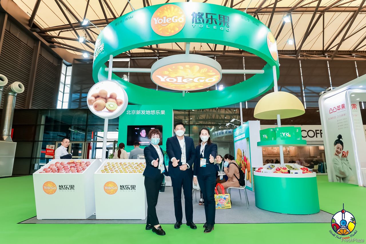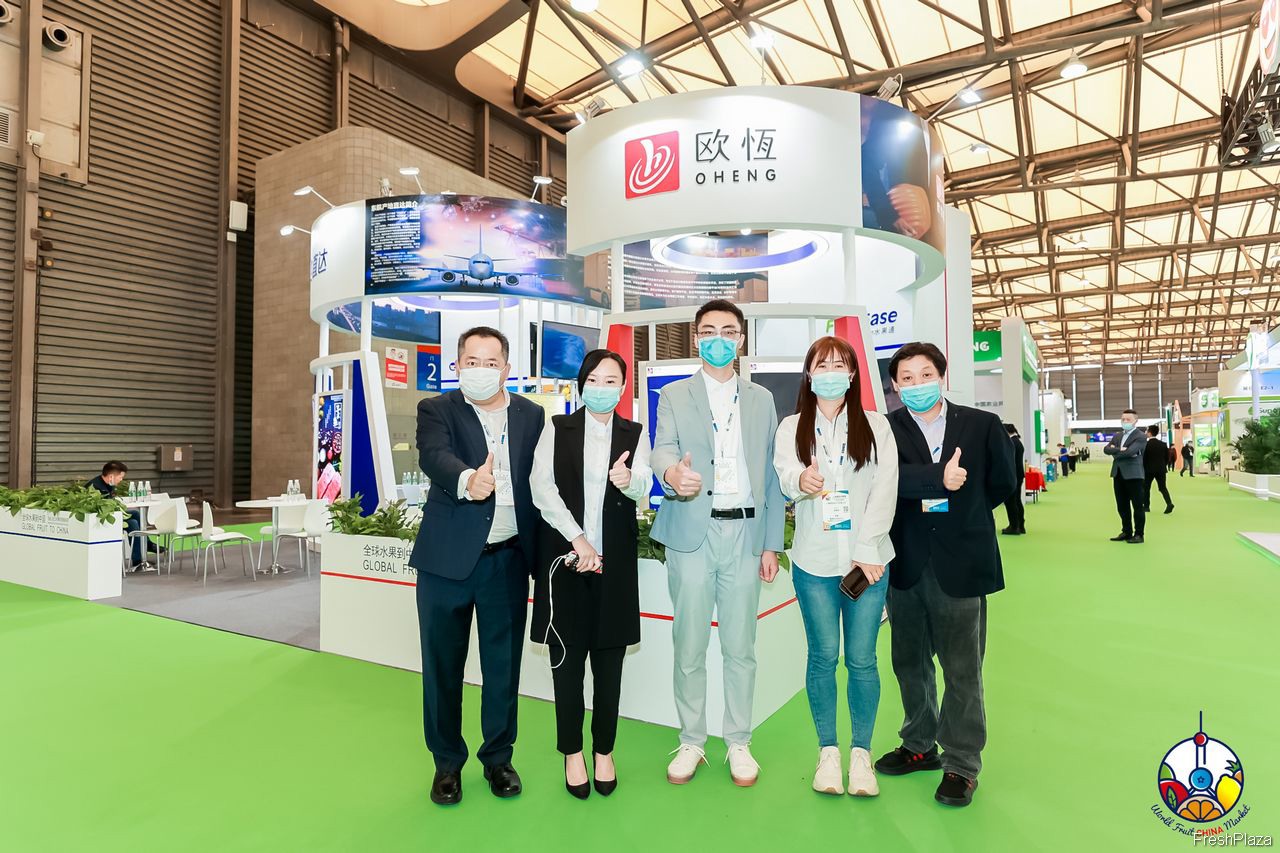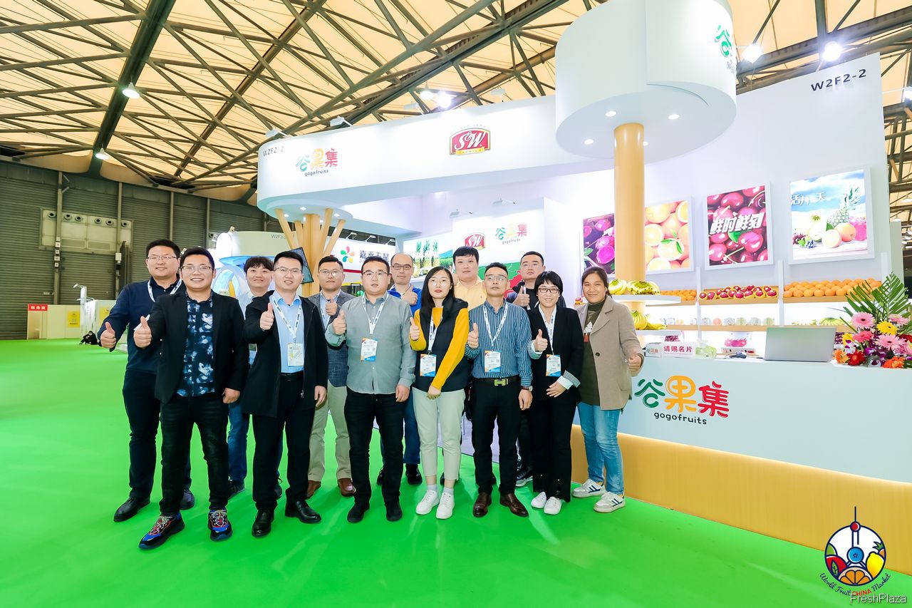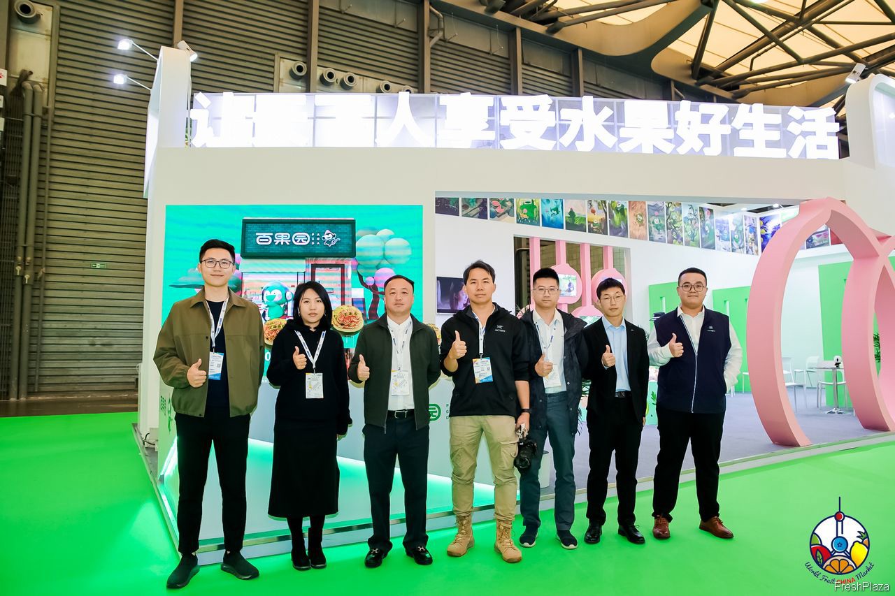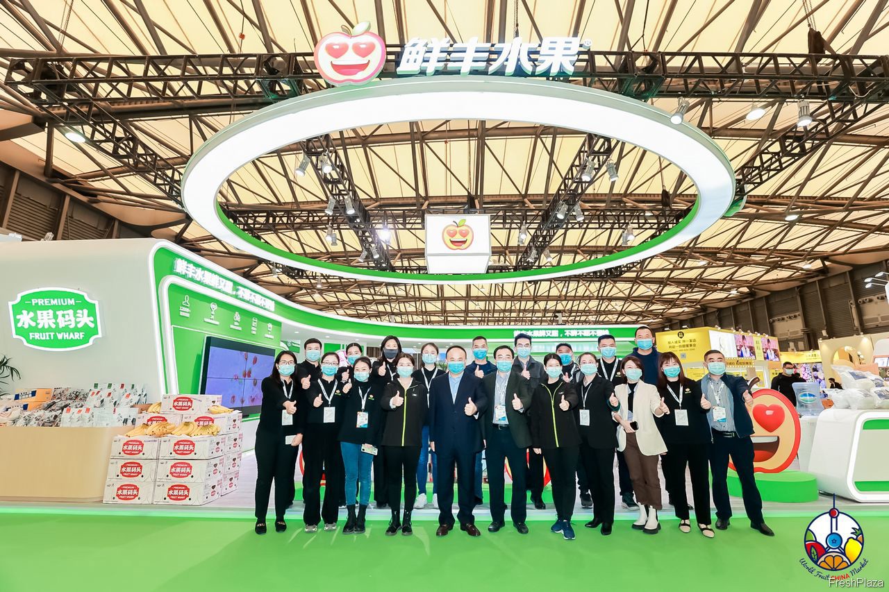 鲜丰水果的参展代表合影留念。