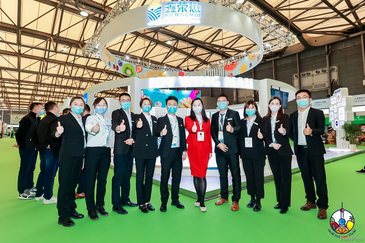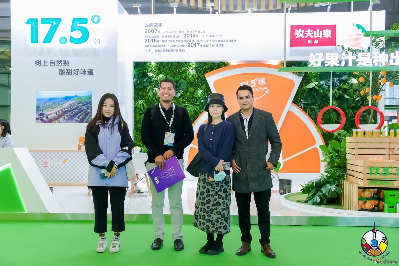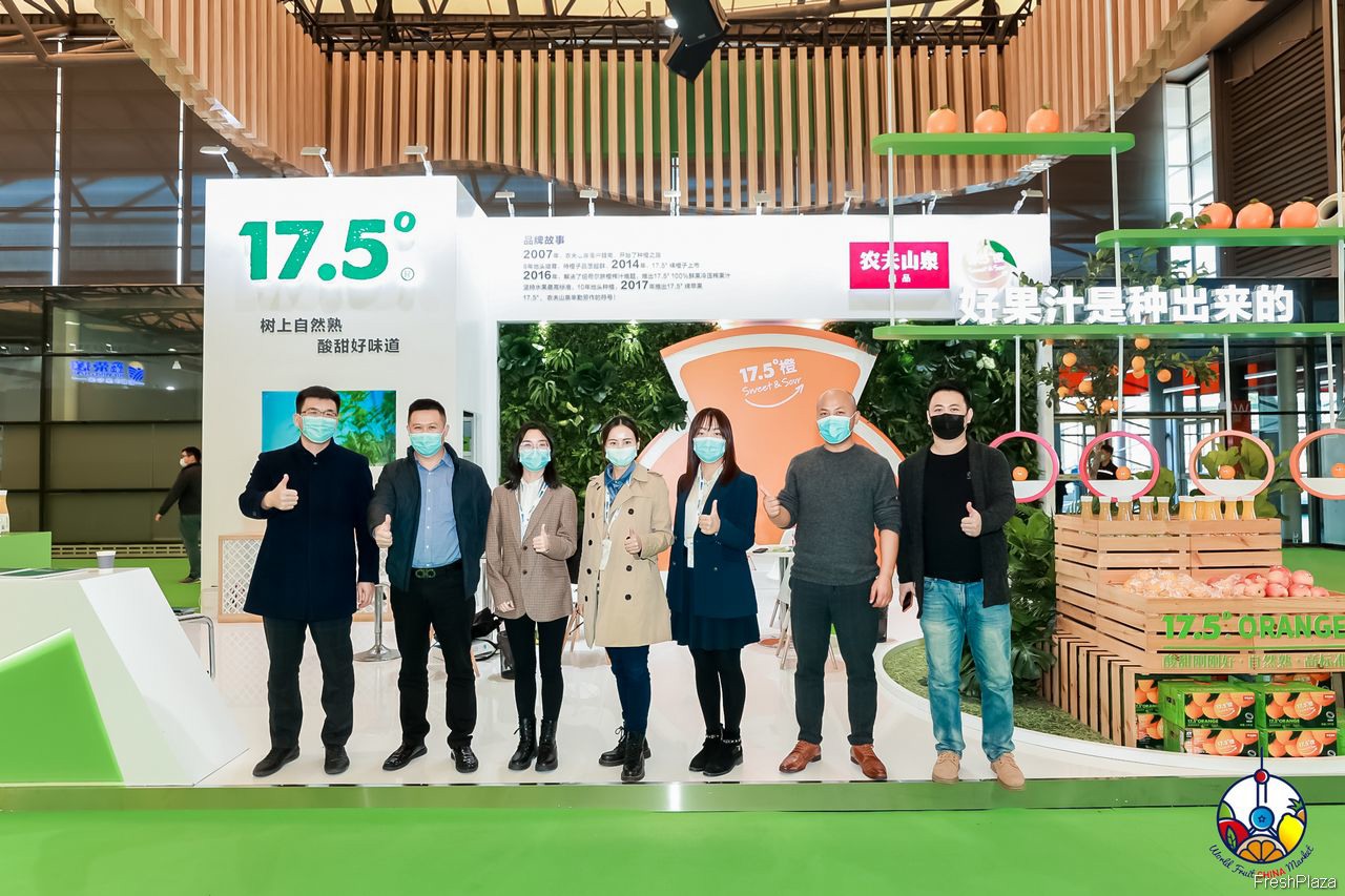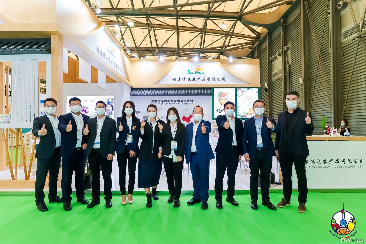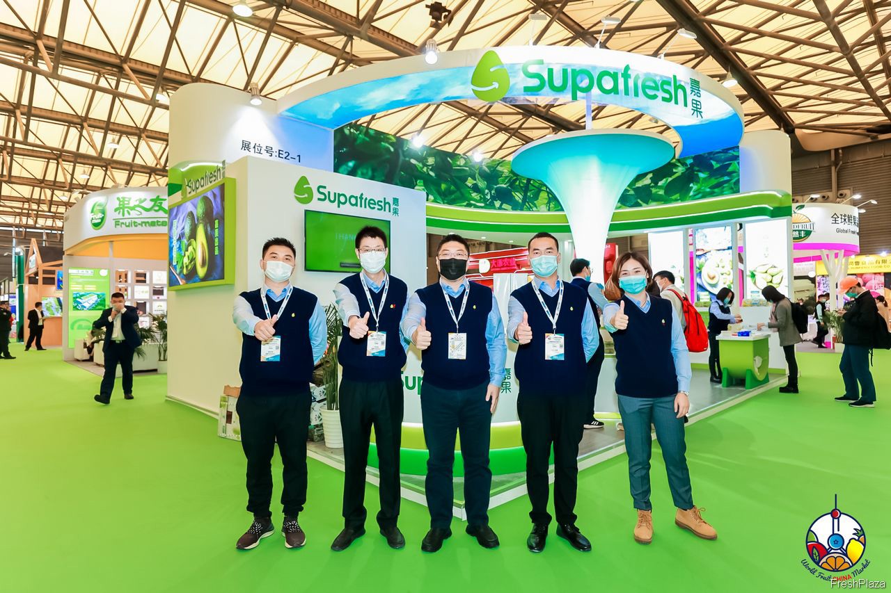 鲜丰水果的参展代表合影留念。