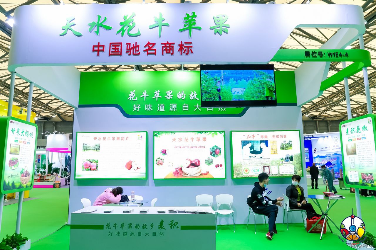天水花牛苹果的展台。