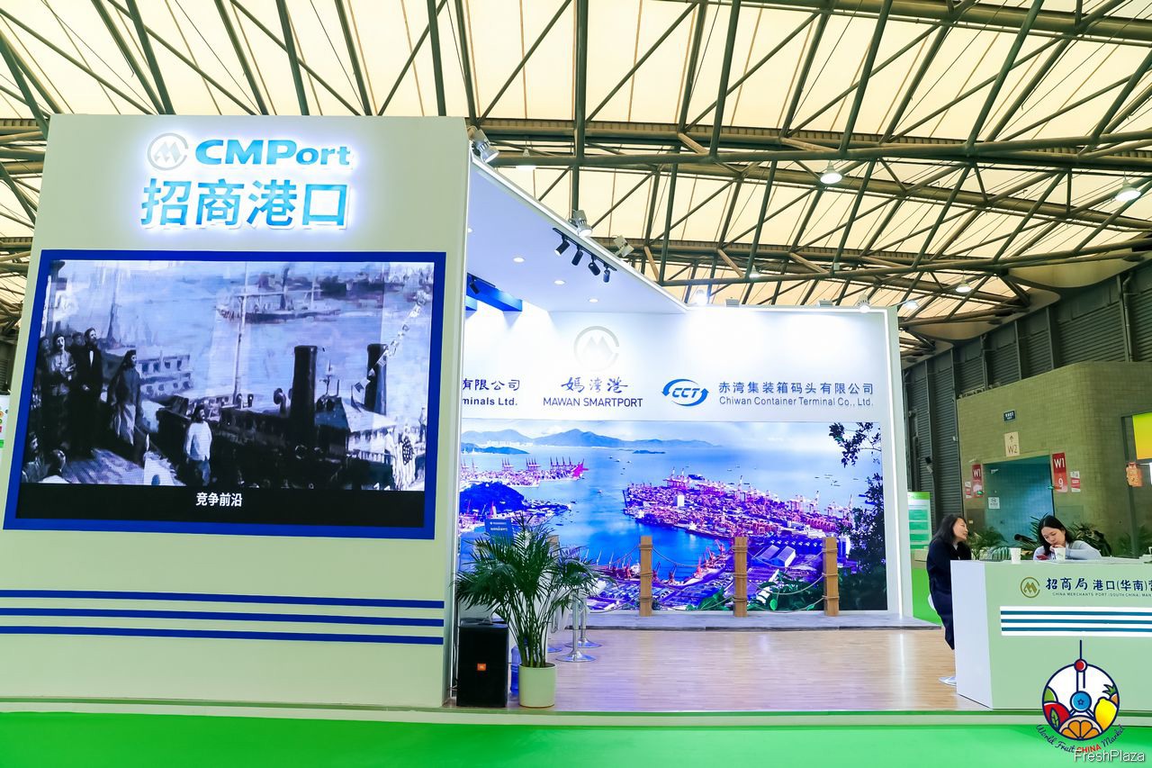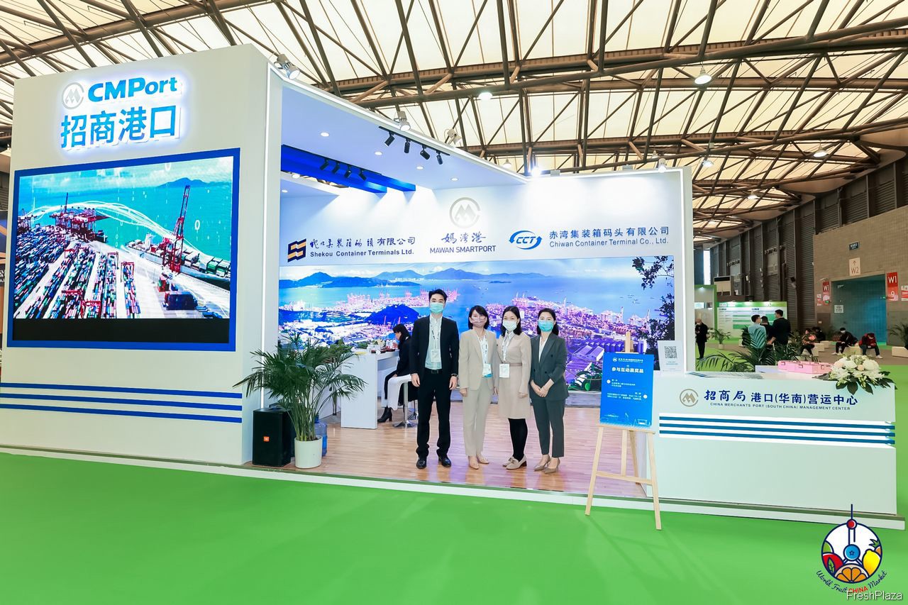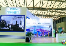 赤湾集装箱码头有限公司的代表在展位前合影留念。