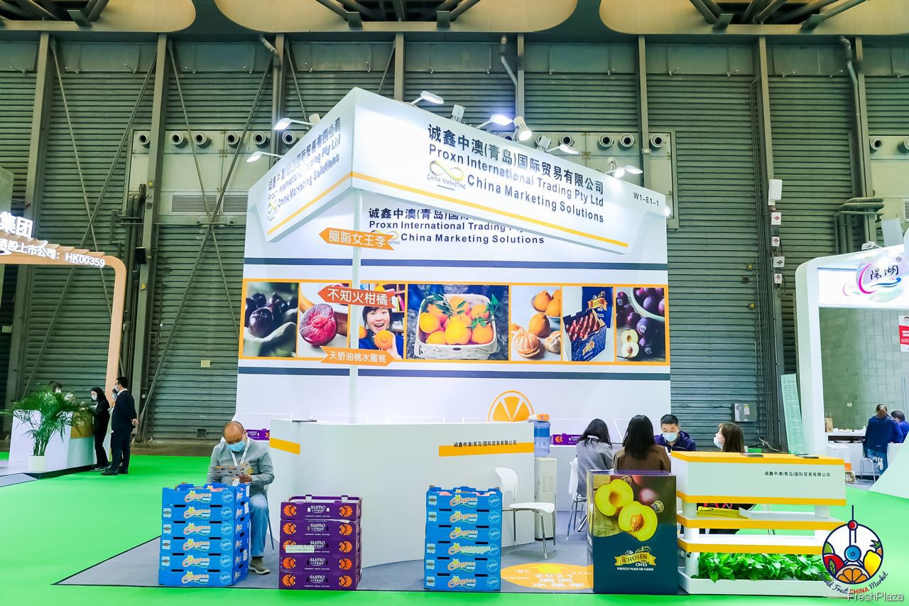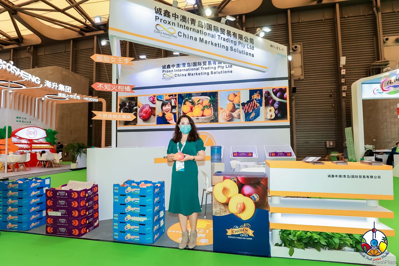 诚鑫中澳青岛国际贸易有限公司带来了胭脂女王李、不知火柑橘、天娇油桃水蜜桃等多种果品。