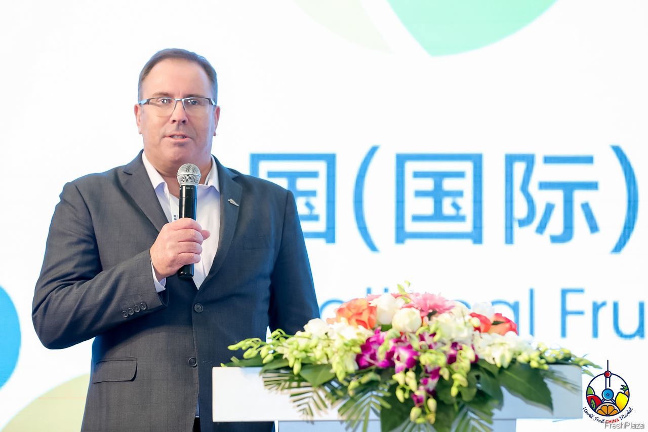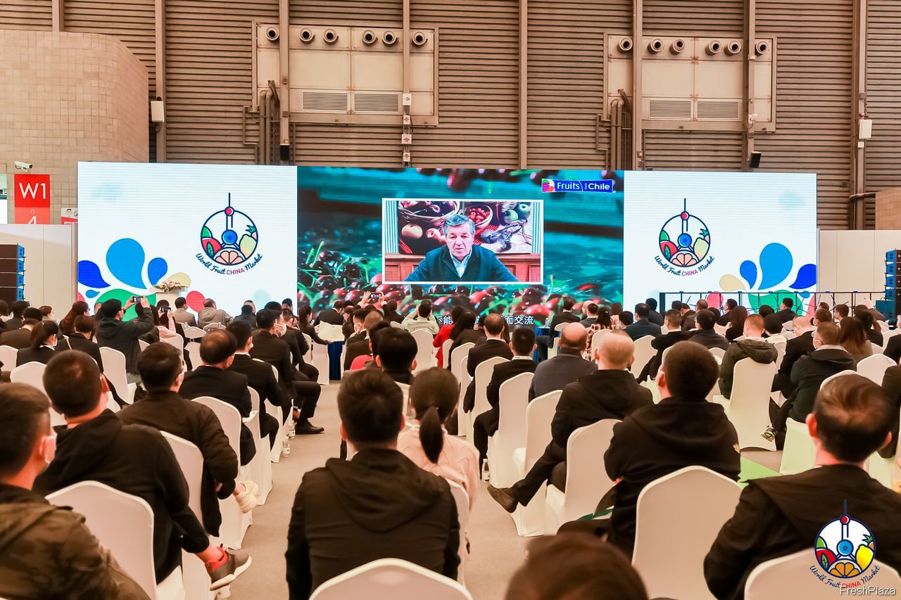 因疫情原因无法来到现场的智利水果商出口协会(ASOEX)主席Ronald Bown在开幕式上线上和大家进行互动。