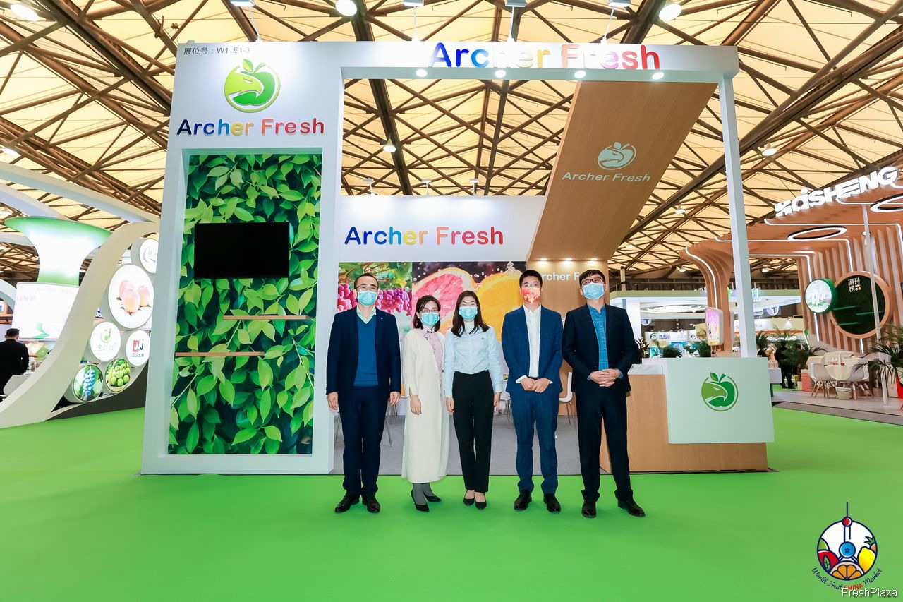 来自Archer Fresh的公司代表在展位前合影留念。