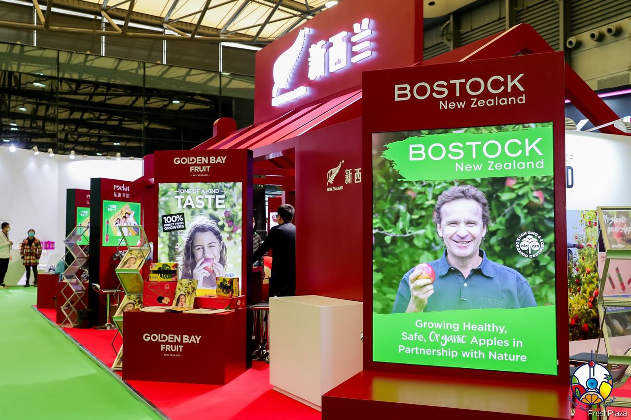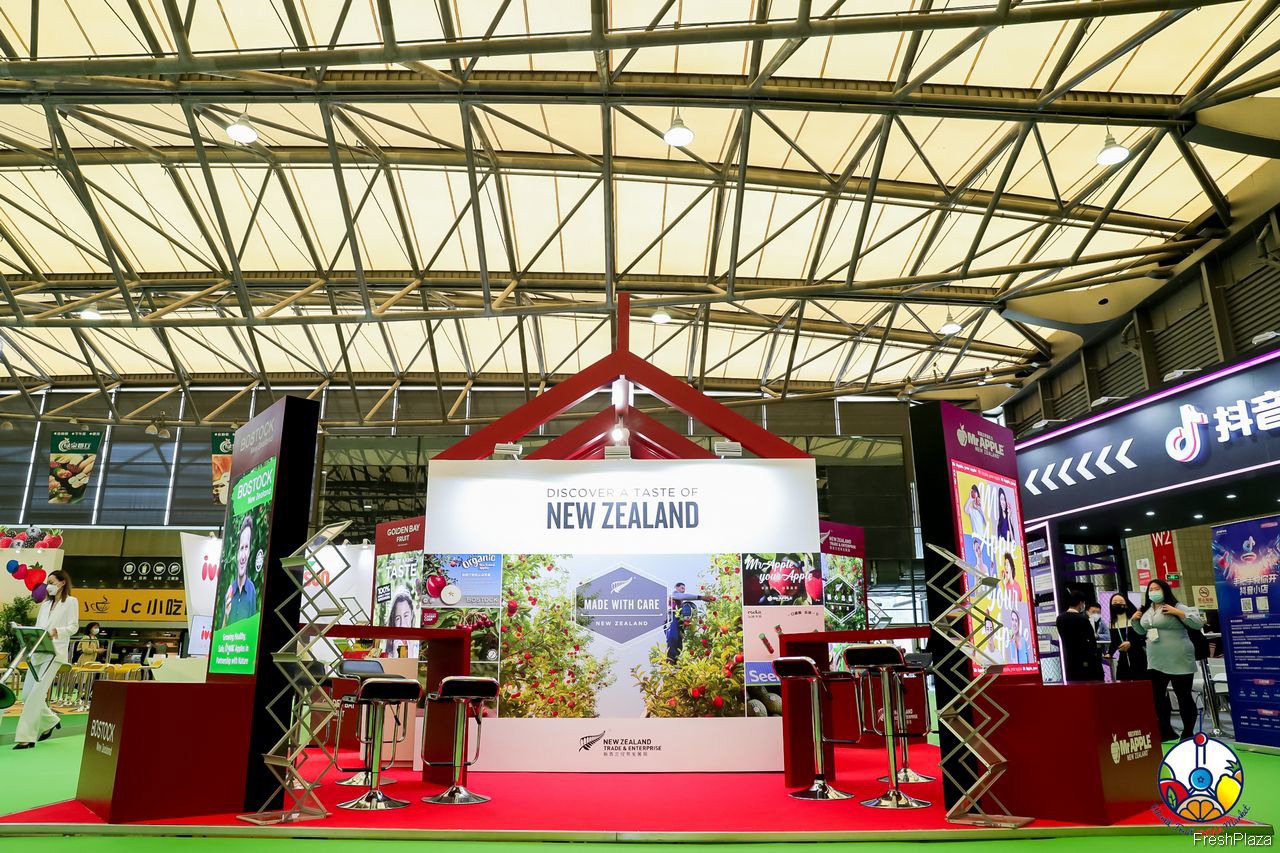 新西兰展区内,新西兰贸发局组织的展台联合了Mr Apple等6家知名企业参展。