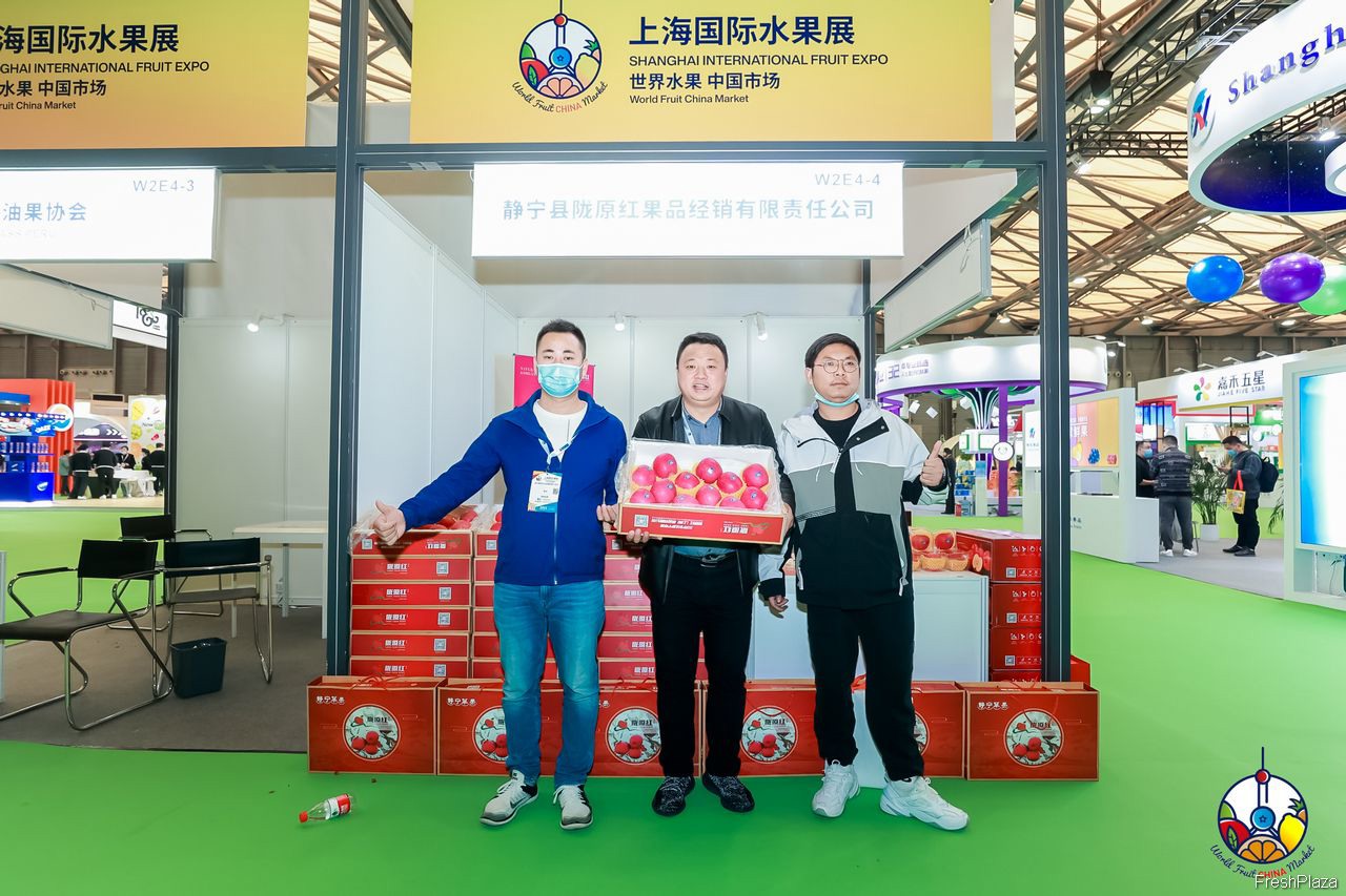 秦安雪原果品有限公司带来了雪原红苹果、雪原-花牛等多个苹果品种参展。