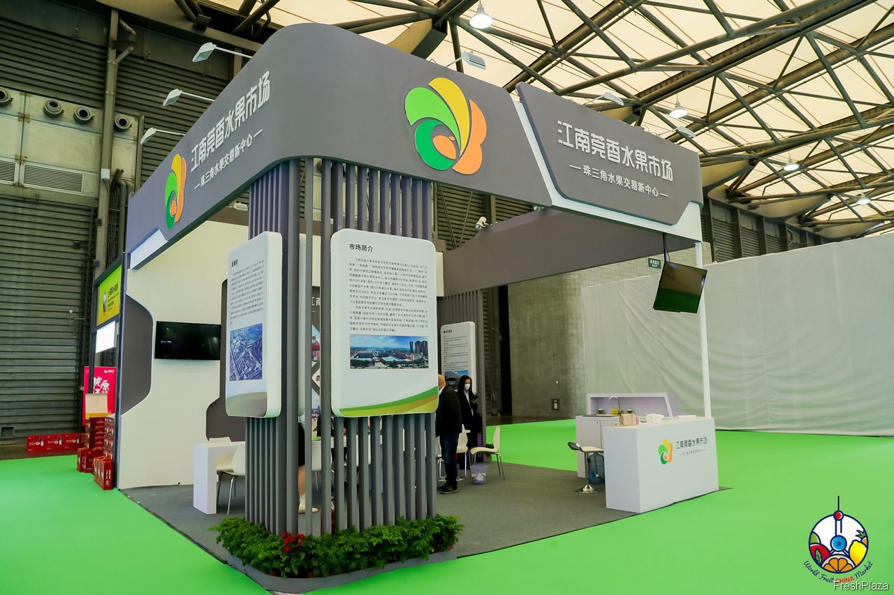 “珠三角水果交易的新中心”江南菀香水果市场的展台。