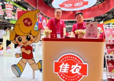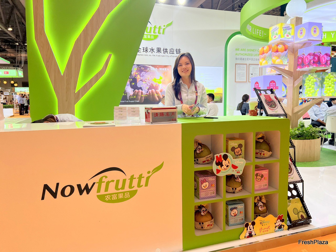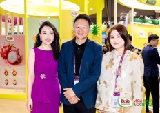 The representatives of Nowfrutti with their beautifully designed product packaging on display at the stand. / 农富果品的代表带着设计精美的产品包装在展位上展示。
