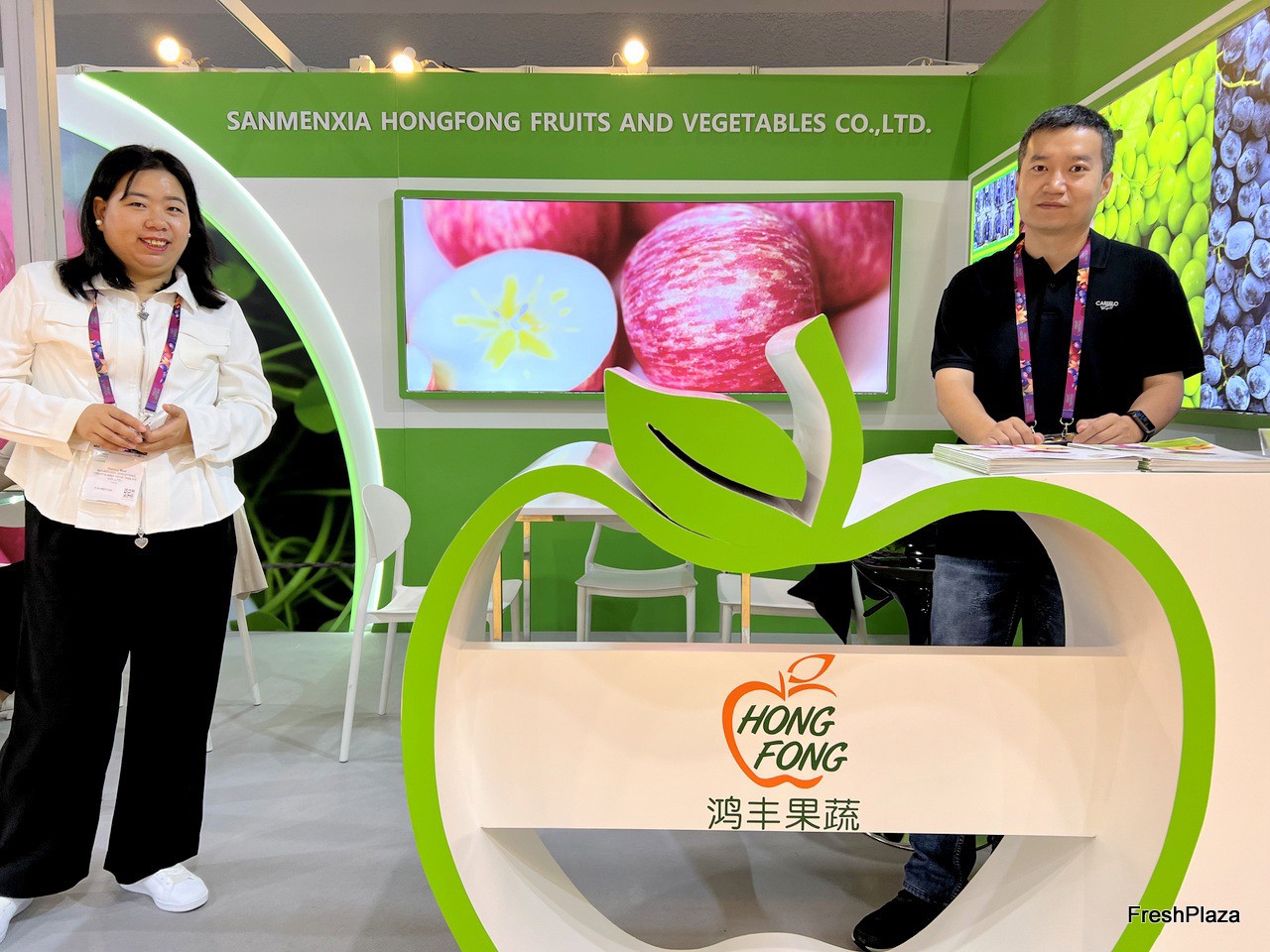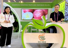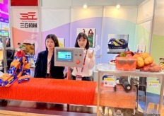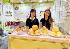 Mrs Nancy Xue (left) and her colleague (right) of Sanmenxia Hongfeng fruits and vegetables./ 三门峡鸿丰果蔬的 Mrs Nancy Xue (左) 和她的同事 (右)