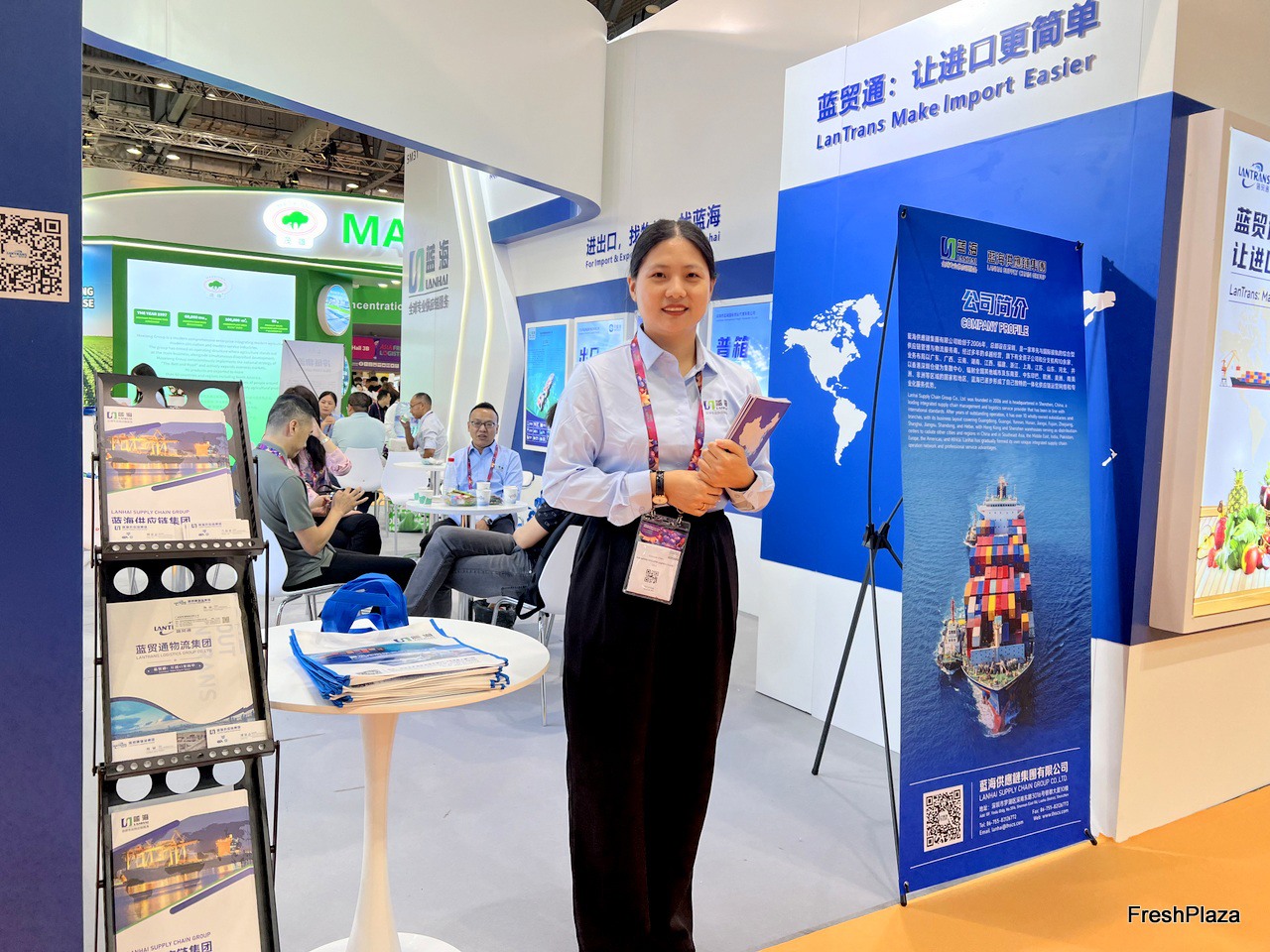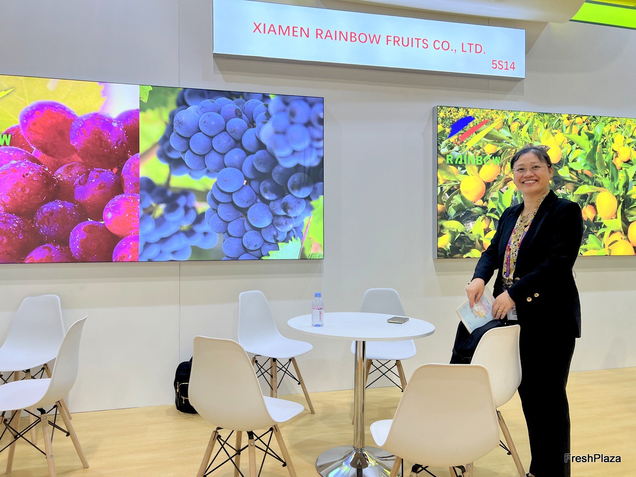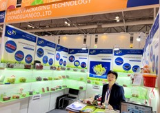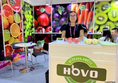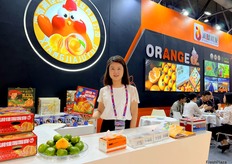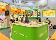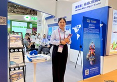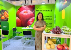 Mrs Andi Xiao of Runkong Food. This is the first time the company attends the Asia Fruit Logistica. Runkong Food imports a wide variety of tropical fruits from South East Asia. / 润控食品的 Mrs Andi Xiao。这是该公司首次参加亚洲国际果蔬展。润控食品从东南亚进口多种热带水果。