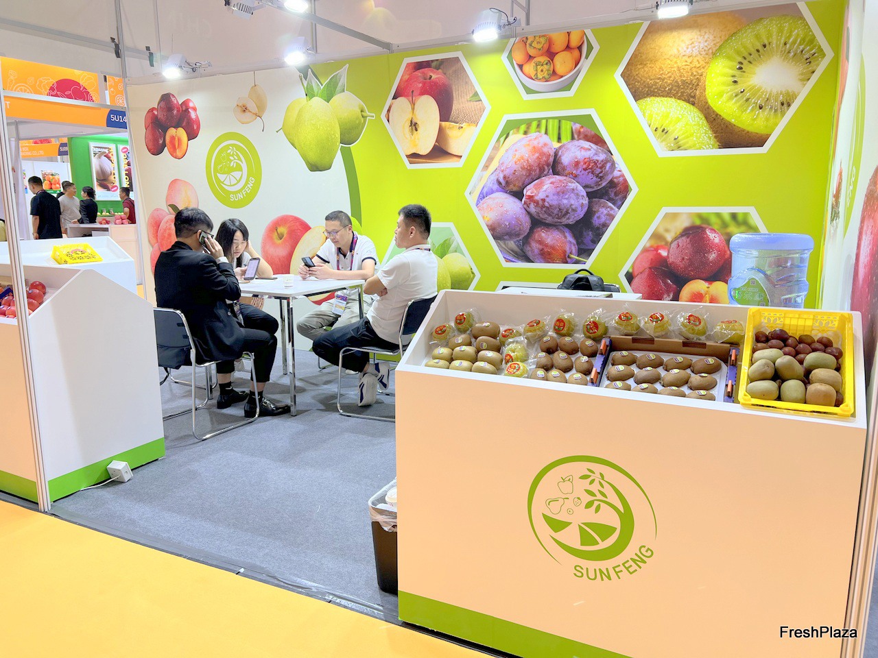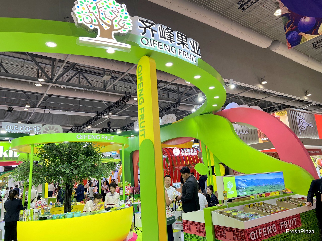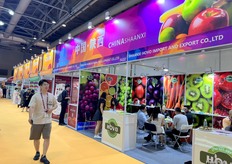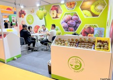 The stand of Qifeng fruit. Kiwi is the company's main product. / 齐峰果业的展位。奇异果是公司的主要产品。