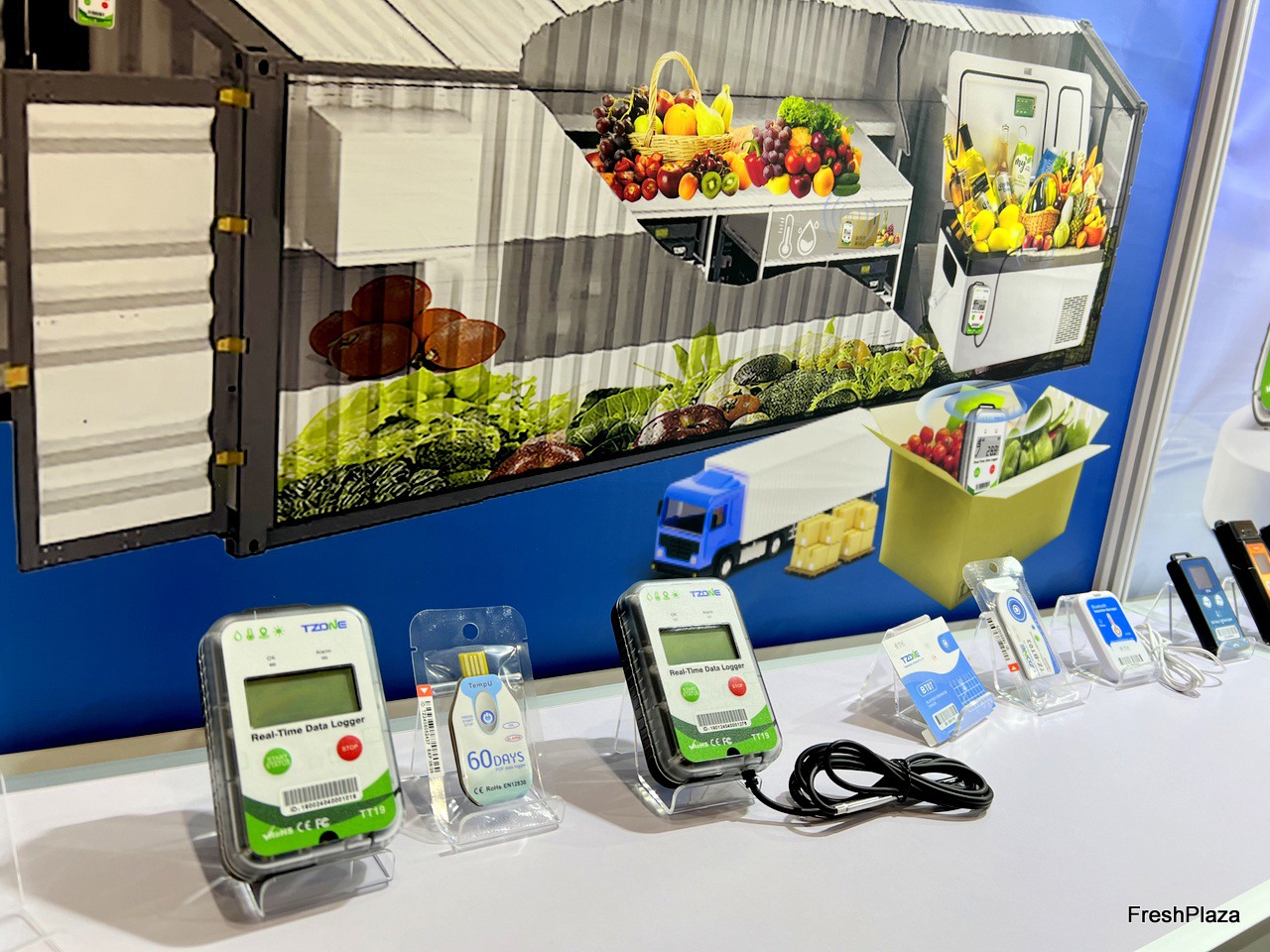 A variety of data loggers on display at the Tzone stand./ Tzone 展台上展示了各种数据记录仪。