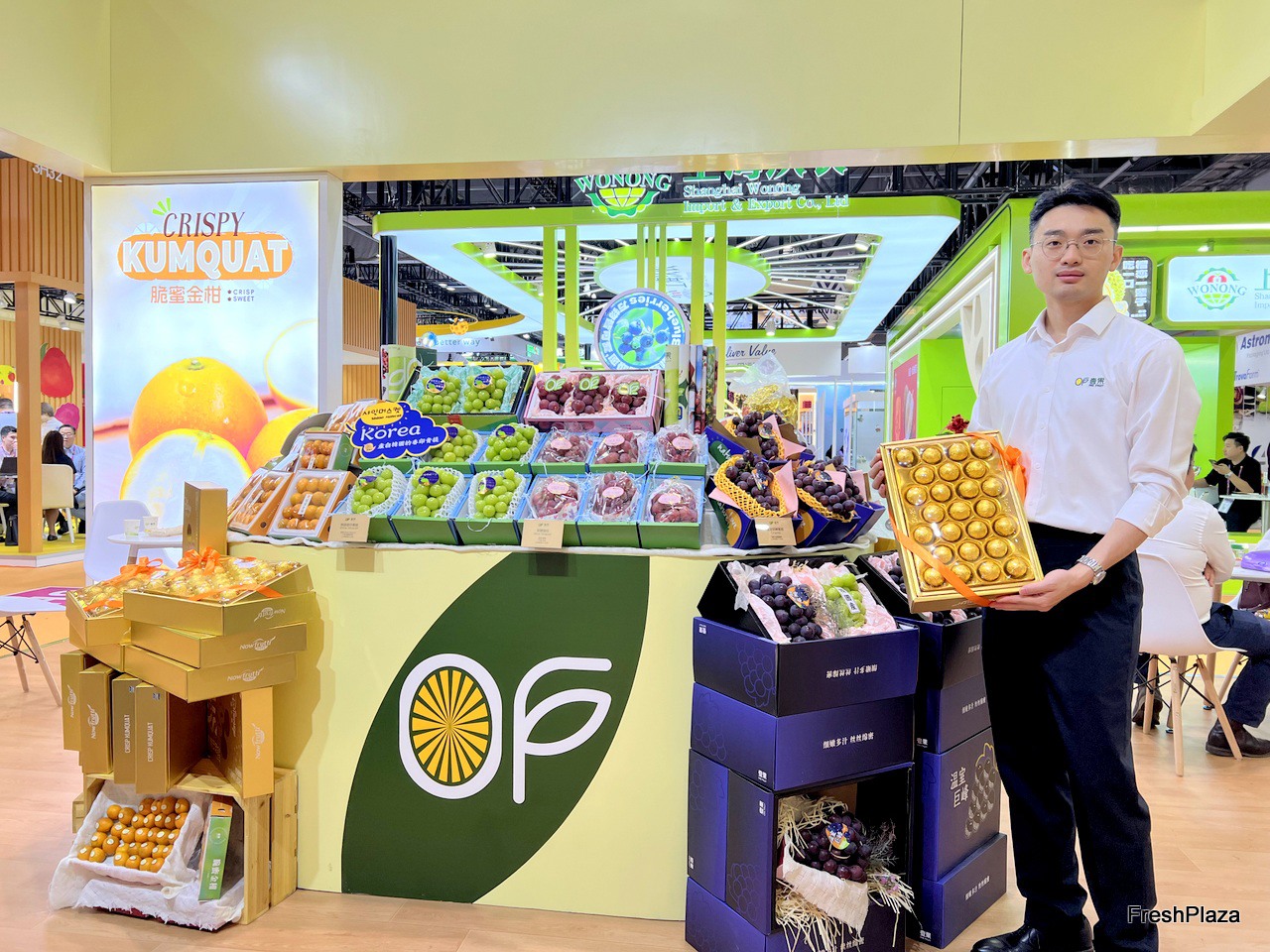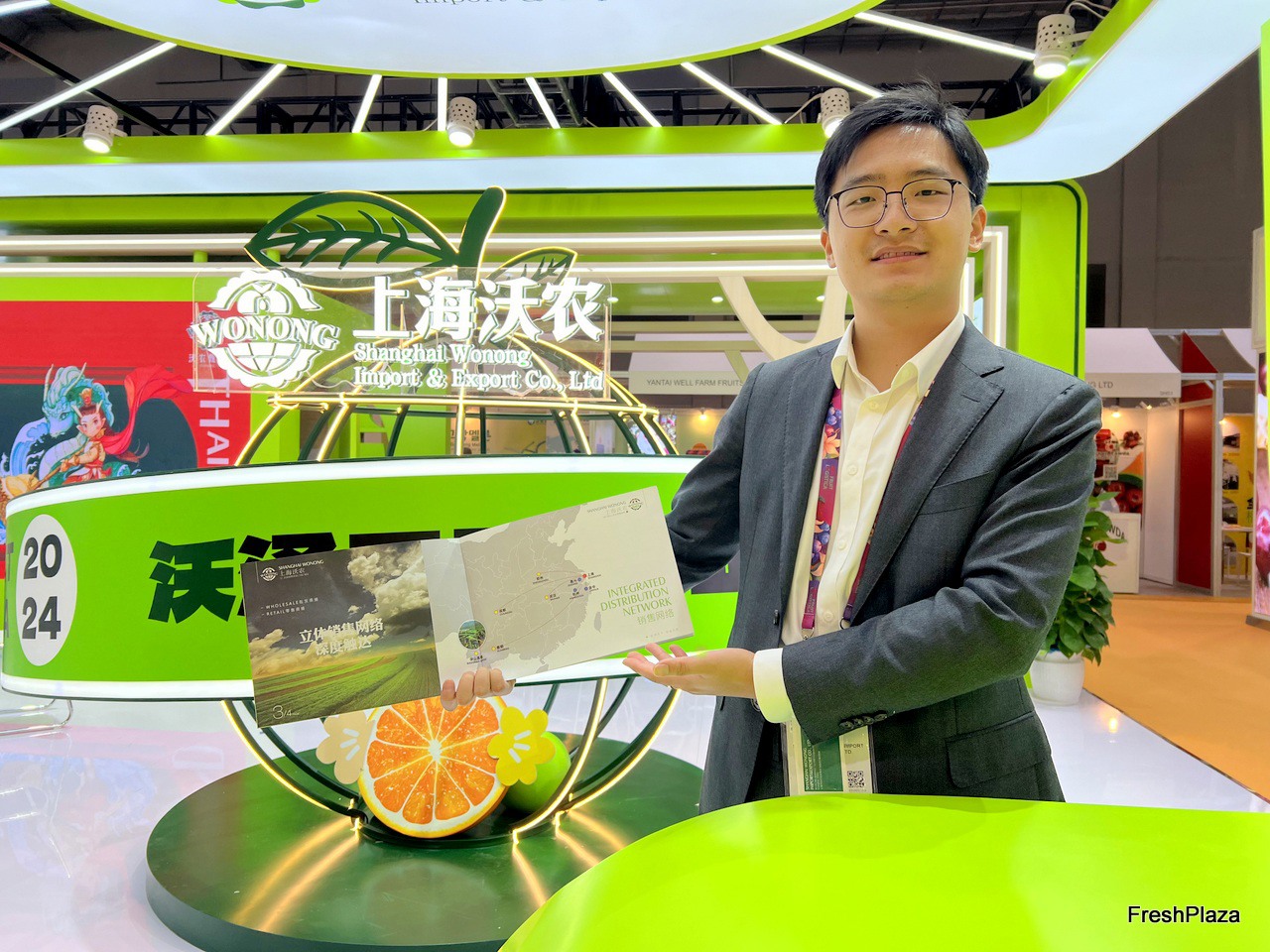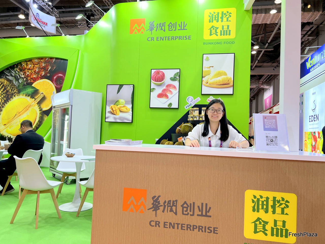 Representative at the Fresh Wogan stand. / Fresh Wogan 公司的参展代表在该公司展位前。