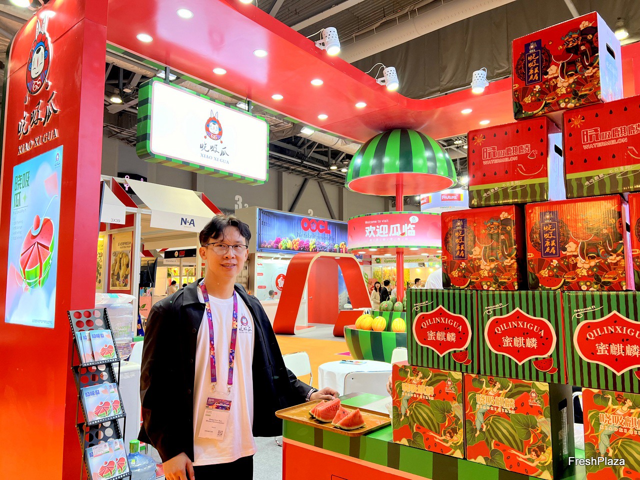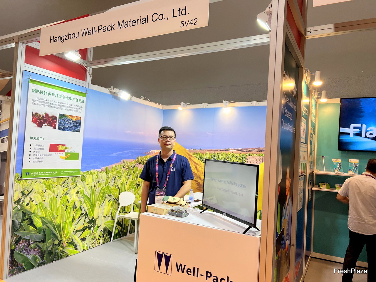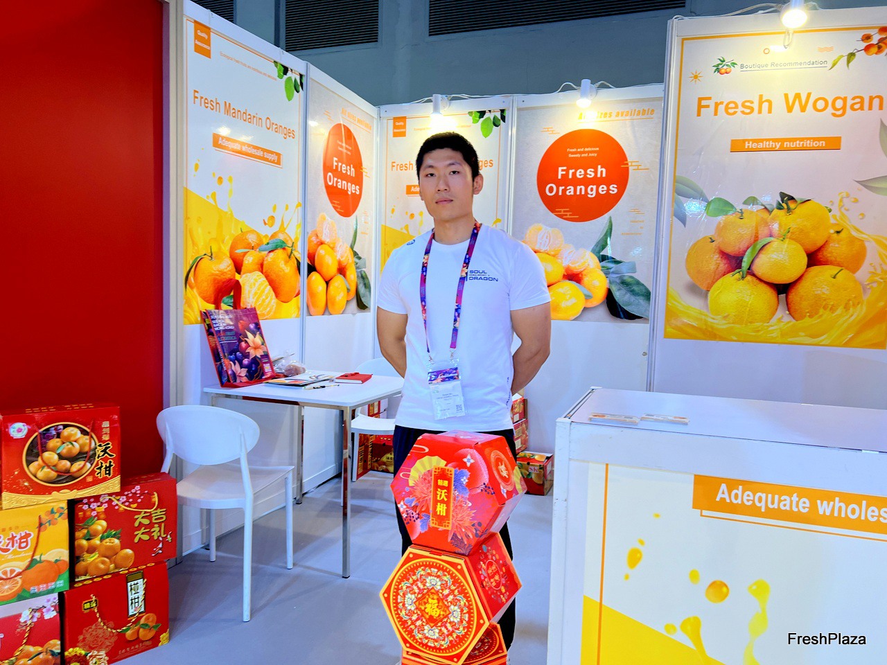 Representative at the Fresh Wogan stand. / Fresh Wogan 公司的参展代表在该公司展位前。
