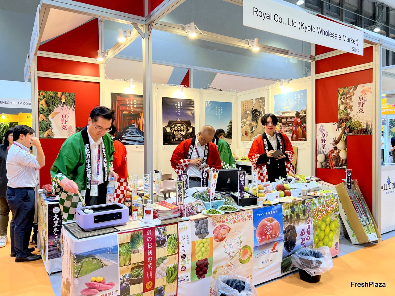 On-site cooking at the stand of Royal Co., Ltd. The company grows a variety of fresh produce in Japan. / 在 Royal Co., Ltd. 展位前现场烹饪。该公司在日本种植各种新鲜农产品。