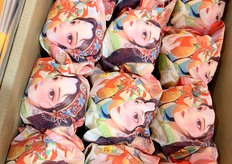 A representatives from One Fruit holding their beautifully packaged tangerine. / One Fruit 公司的代表拿着包装精美的蜜柑。