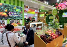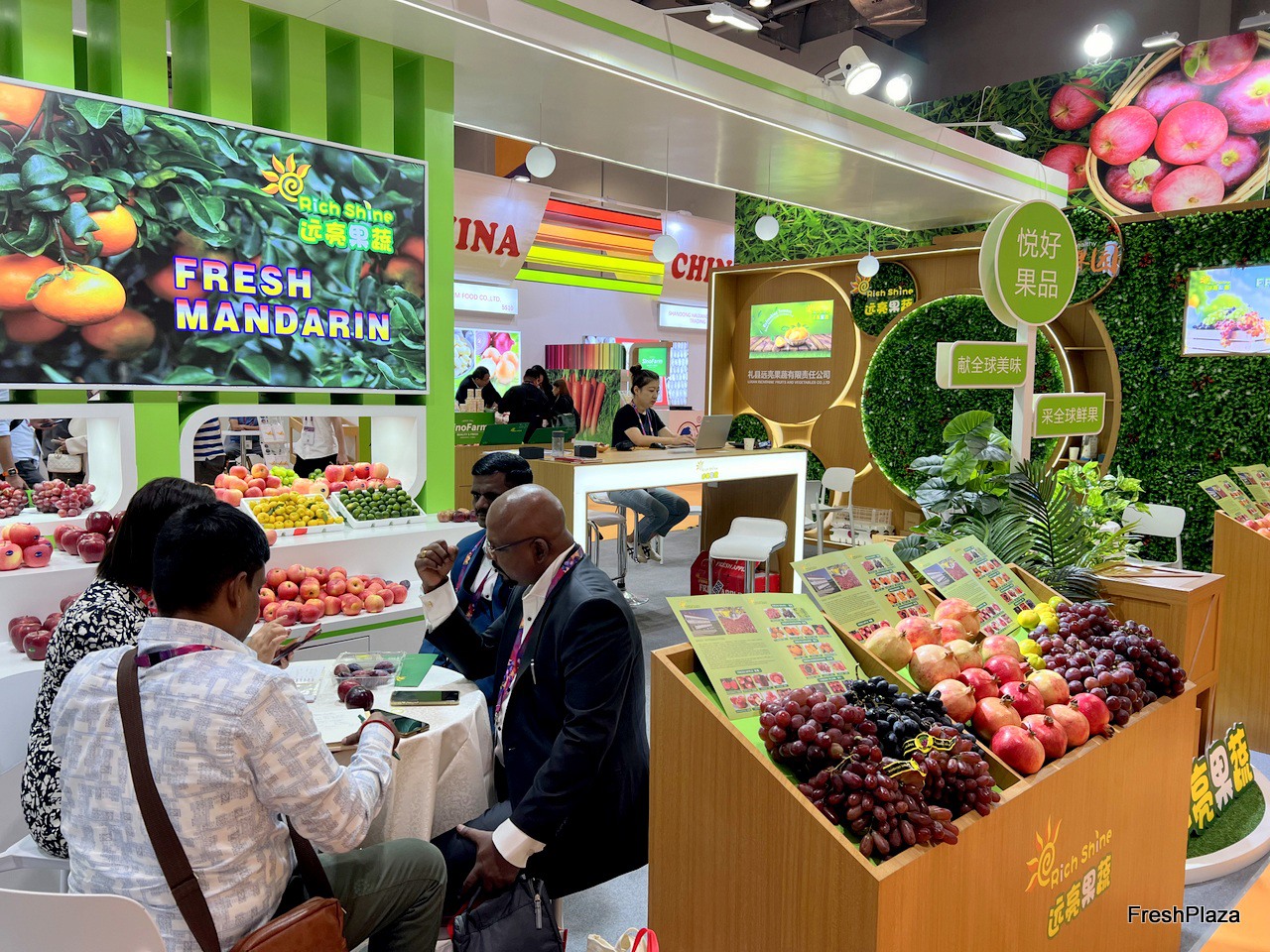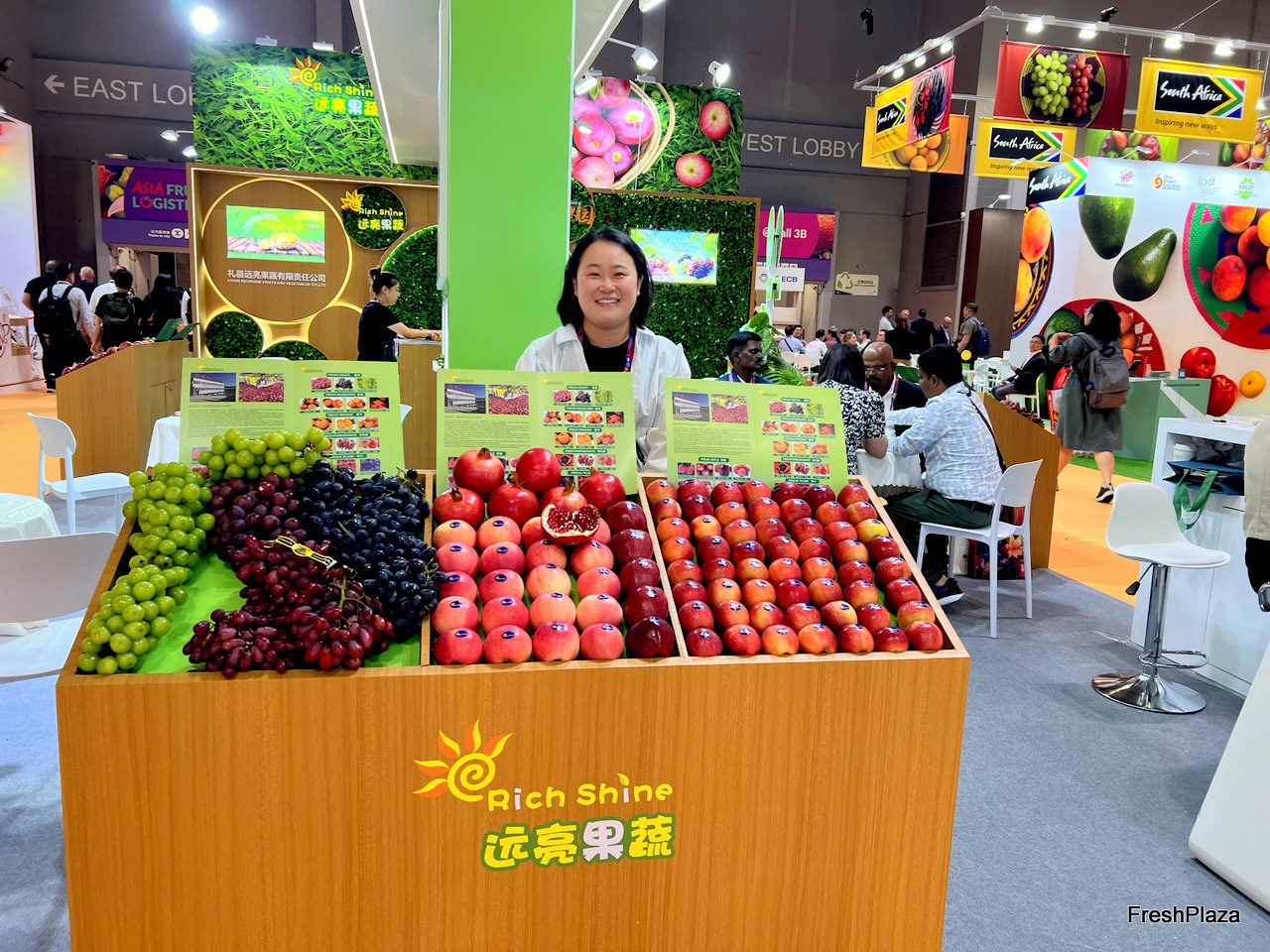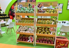 Rich Shine brings a wide variety of fruit to display on its stand. / 远亮果蔬的展位上展示了各种各样的水果。