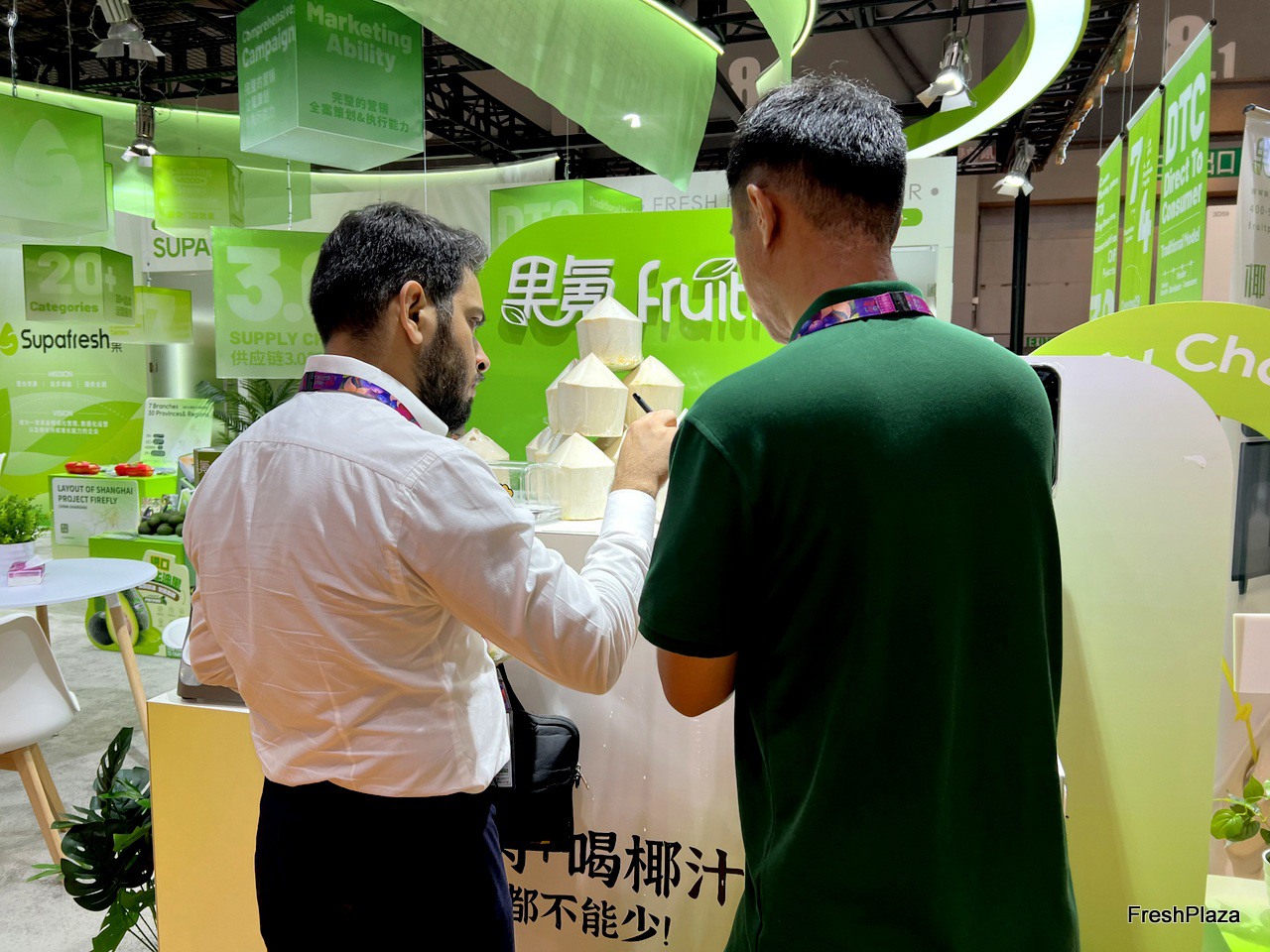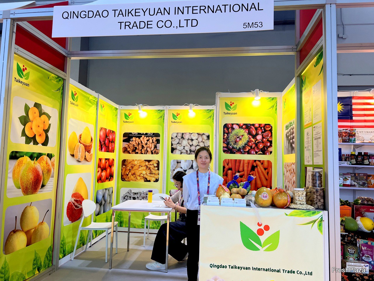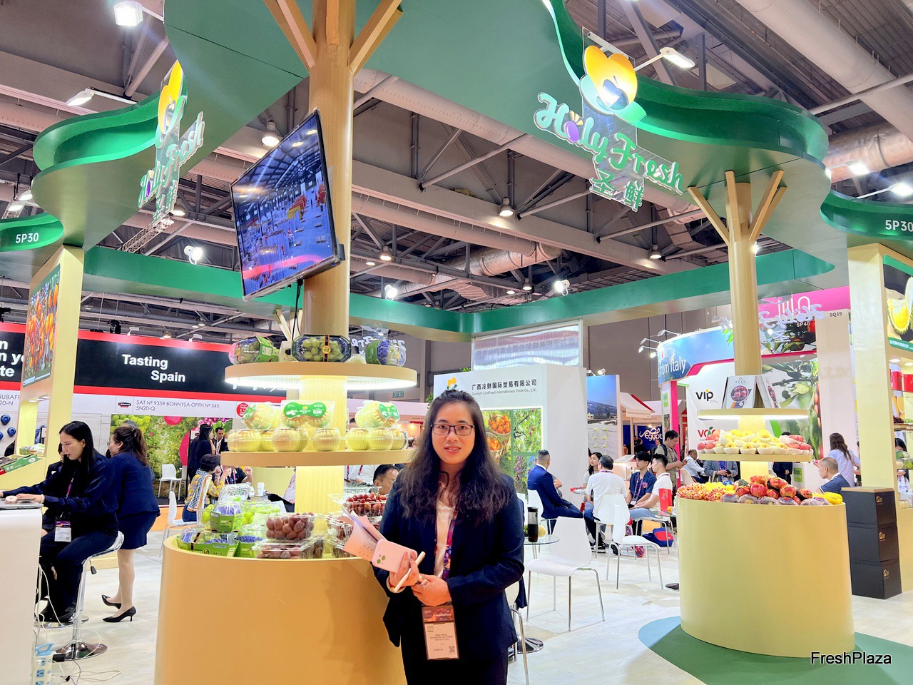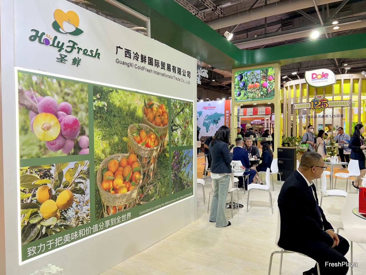 Holyfresh stand with a wide range of product display. / Holyfresh展台上展示着种类丰富的产品。