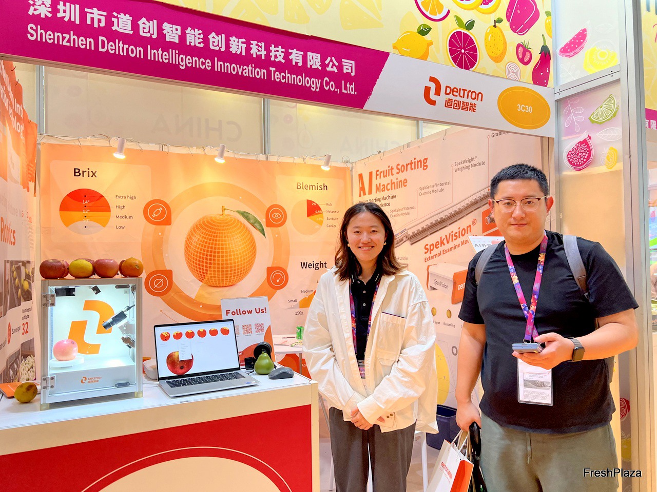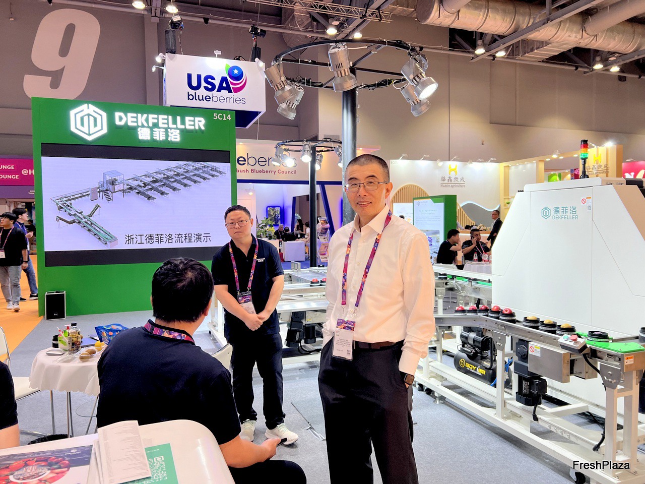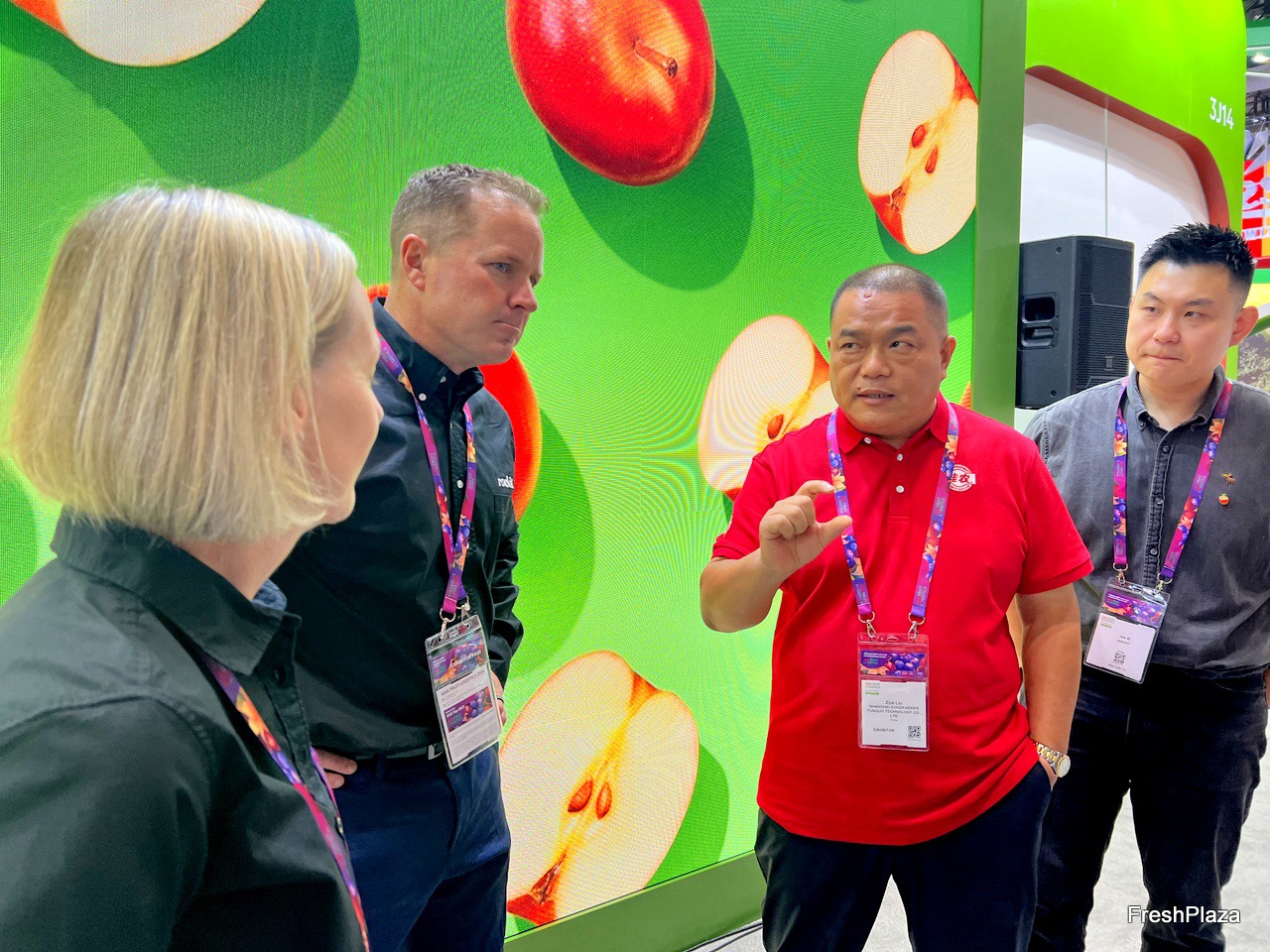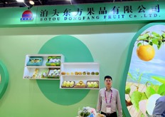Mr Hong of Dekfeller. The company develops and manufactures grading machines in Zhejiang province. This is the company's first time at Asia Fruit Logistica. / 德菲洛的洪先生。该公司在浙江省开发和制造分级机。这是该公司首次参加亚洲国际果蔬展。
