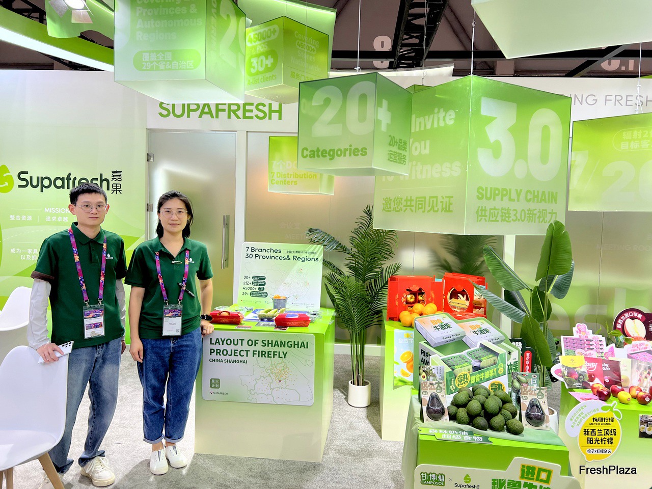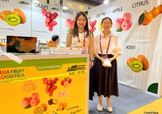Elean Huang (right) and her colleague from Supafresh. The company imports a variety of fruits from all over the world. Pearuan avocados and New Zealand lemons are currently one of their main seasonal products. / 嘉果公司展位,Elean Huang(右)和她的同事。该公司从世界各地进口各种水果。智利牛油果和新西兰柠檬目前是他们的主要季节性产品之一。