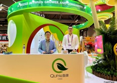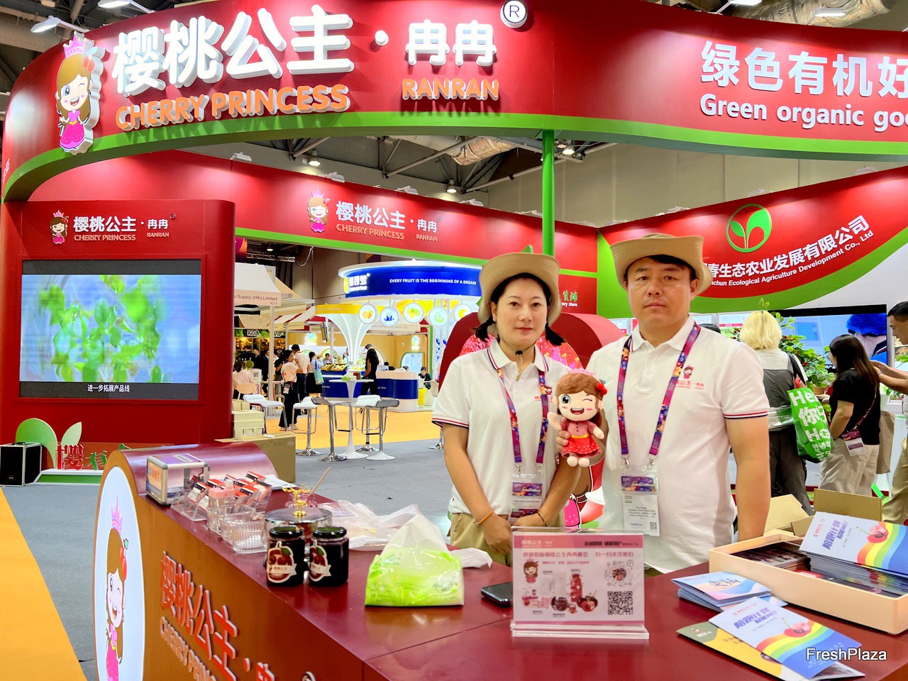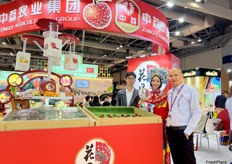 Mr Meng (right) and his colleague at the stand. Cherry Princess is a cherry grower in China, the company has several plantation areas in North East China. / 孟先生(右)和他的同事在展位上。“樱桃公主”是中国的樱桃种植商,该公司在中国东北地区拥有多个种植园。