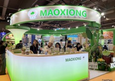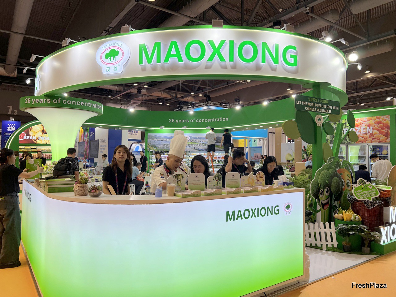 Maoxiong stand. The company is serving freshly cooked vegetables at their stand for visitors to taste. / 茂雄展位。该公司在摊位上提供新鲜烹制的蔬菜供访客品尝。