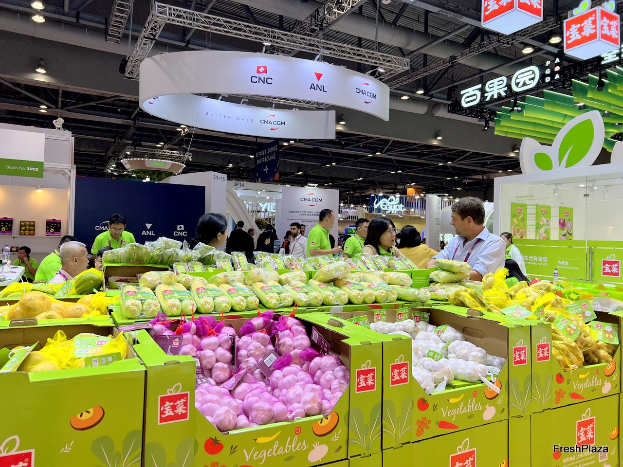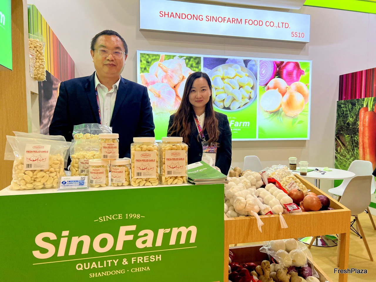 Garlic, ginger and onions are SinoFarm's main export products. The company brings a wide range of products to display at the exhibition. / 大蒜、生姜和洋葱是 SinoFarm 的主要出口产品。公司携多款产品亮相展会。