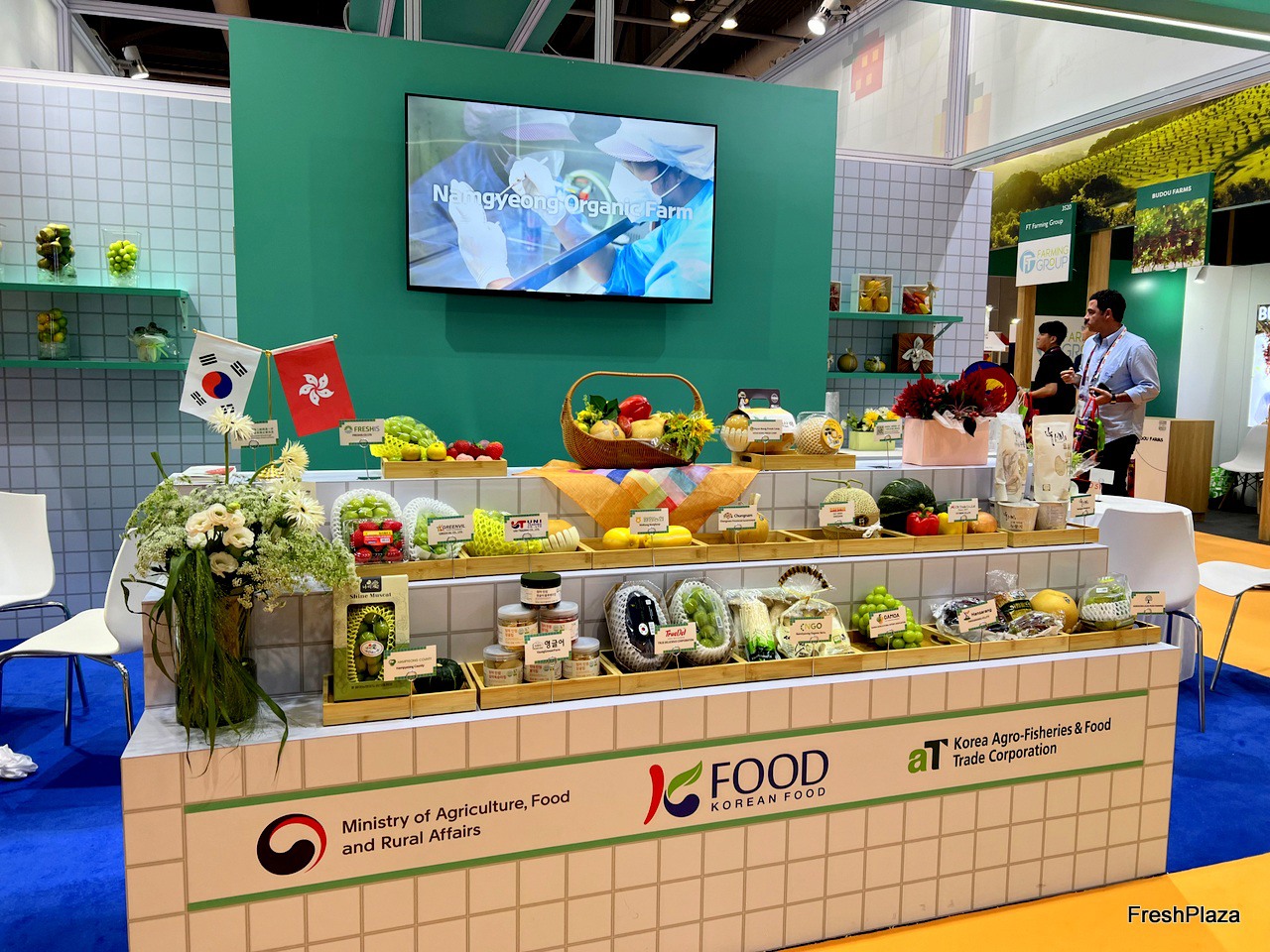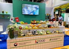 Product display at the Korea Agro-Fisheries & Food Trade Corporation stand. / 韩国农水产食品贸易公司展位上的产品展示。