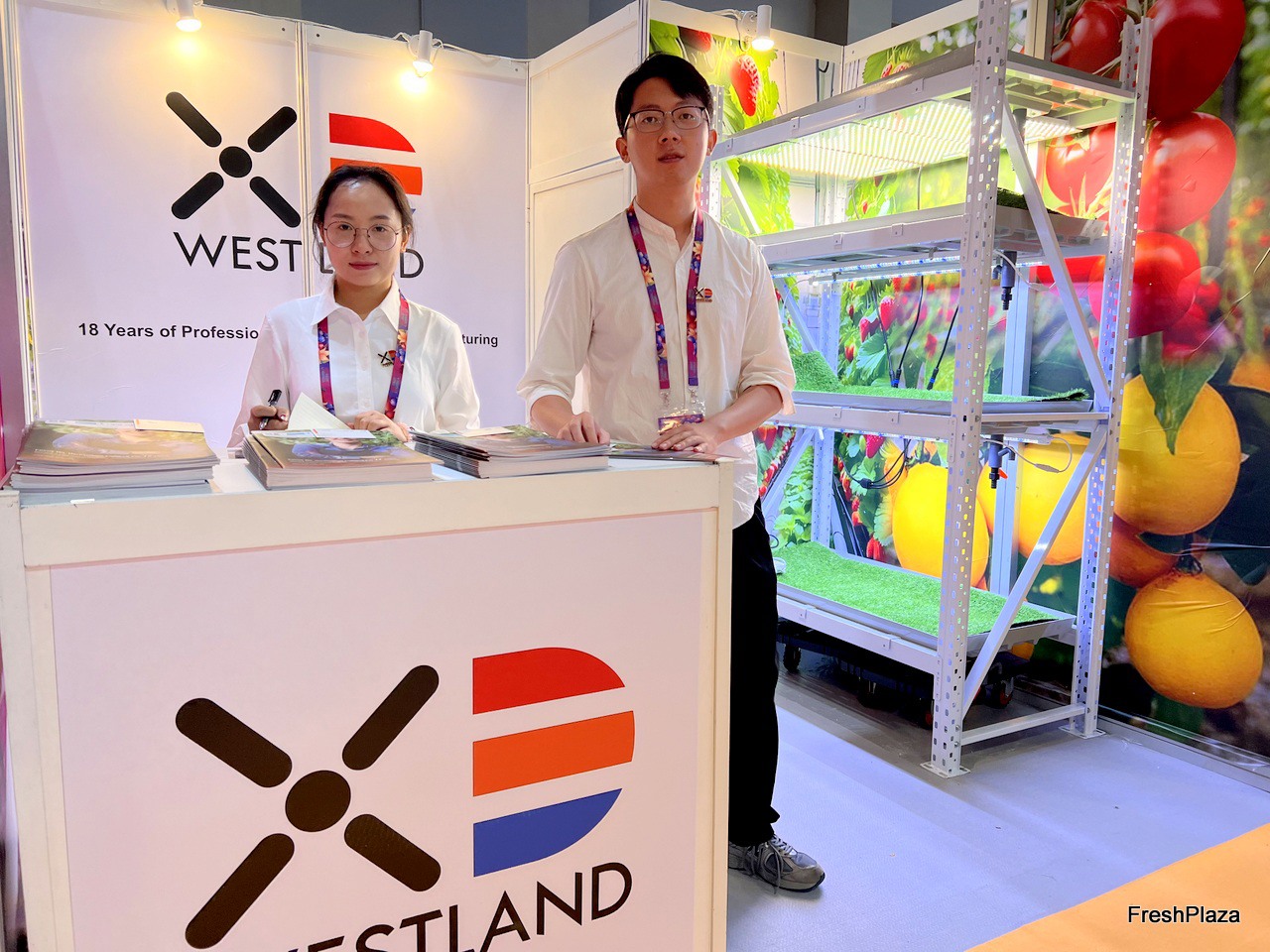 Representatives of Westland, a Shenzhen-based LED manufacturer. The company's products are mainly used in greenhouses, indoor farming, vertical farms and plant factories. / 深圳 LED 制造商 Westland 的代表。公司产品主要应用于温室、室内养殖、垂直农场和植物工厂。