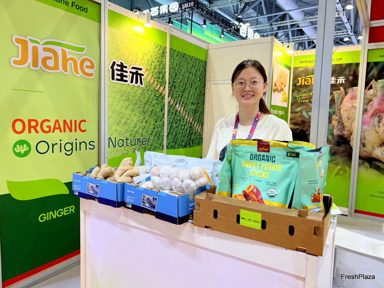 Representative of Jiahe. Ginger and garlic are hte main product of the company. / 佳禾代表。生姜和大蒜是公司的主要产品。
