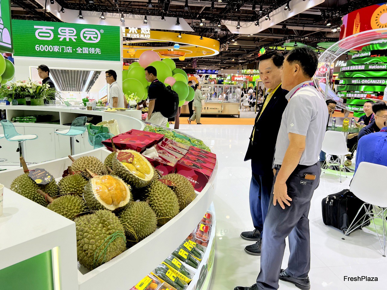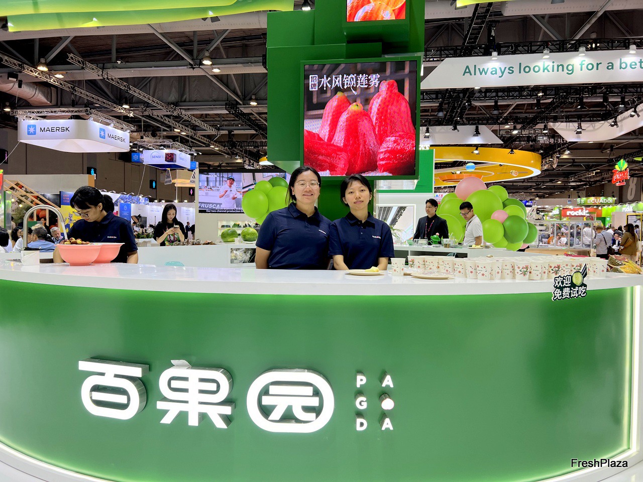 Visitors at the Pagoda stand. / 百果园展位前的访客
