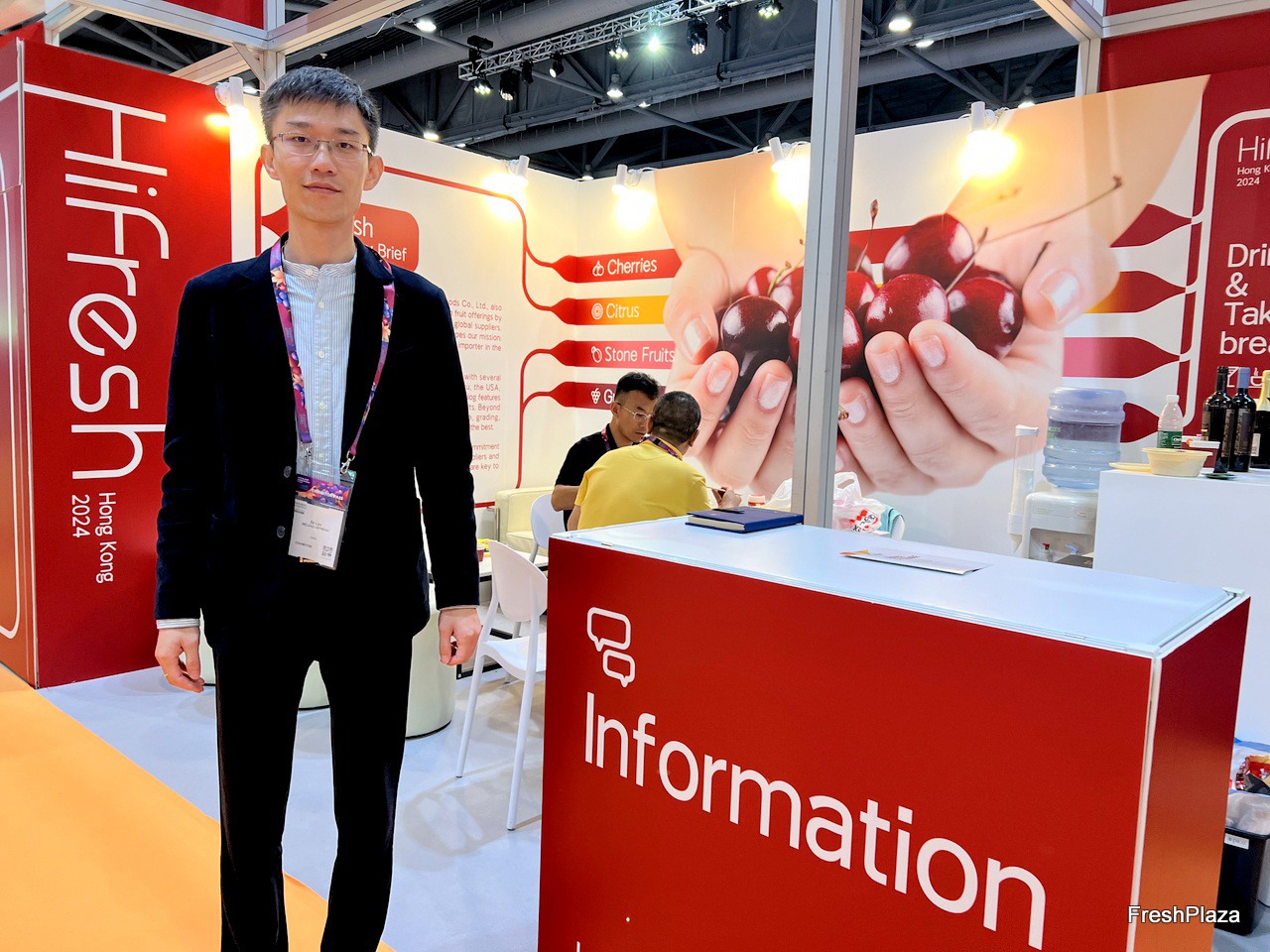 Mr Ze Lyu from Hifresh. The company is based in Beijing XinFaDi market, imports cheeries, citrus, stone fruits and grapes from different regions. / Hifresh的 Ze Lyu 先生。该公司立足于北京新发地市场,从不同地区进口干酪、柑橘、核果和葡萄。