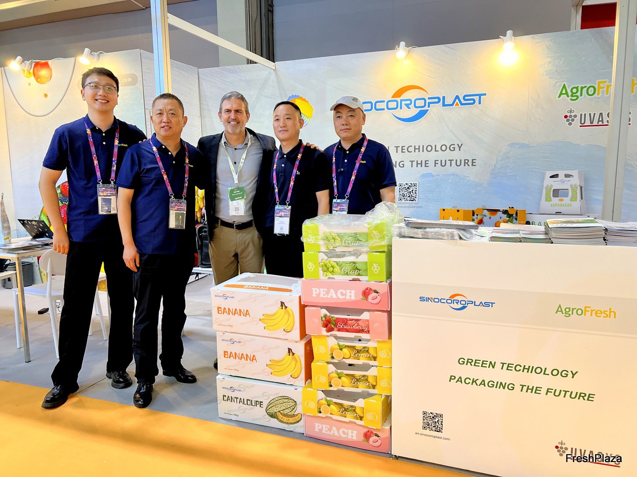 Sinocoroplast team with a representative from AgroFresh (middle). / Sinocoroplast 团队与 AgroFresh 代表(中)。