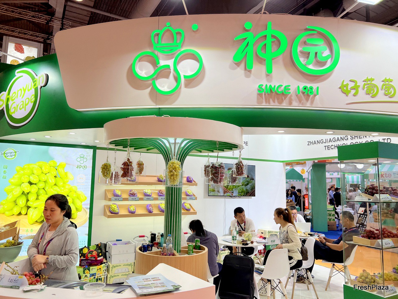 Shenyuan Grape has a wide range of varieties on display at the stand. / 神园葡萄在展台上展示的品种非常丰富。