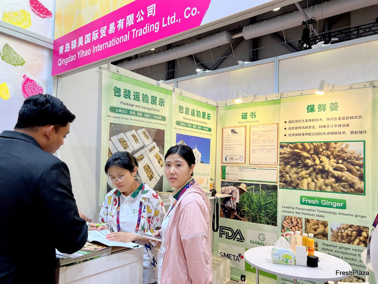 Representatives from Greensteam. Garlic, ginger and lemon are their main product. The company export several hundreds of containers per year. / Greensteam 的代表。大蒜、生姜和柠檬是他们的主要产品。该公司每年出口数百个集装箱。